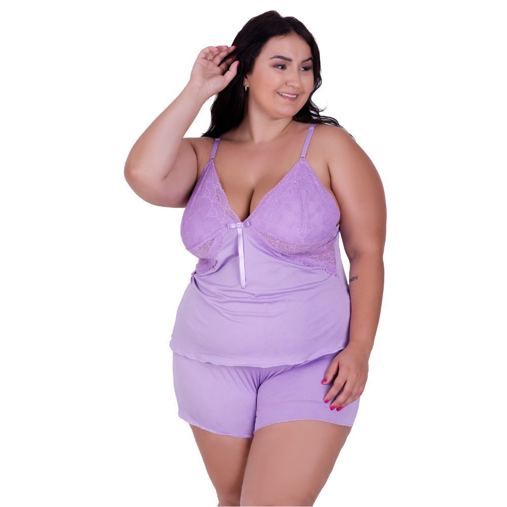 Baby Doll Feminino Plus Size Blusa e Short de Dormir Simone
