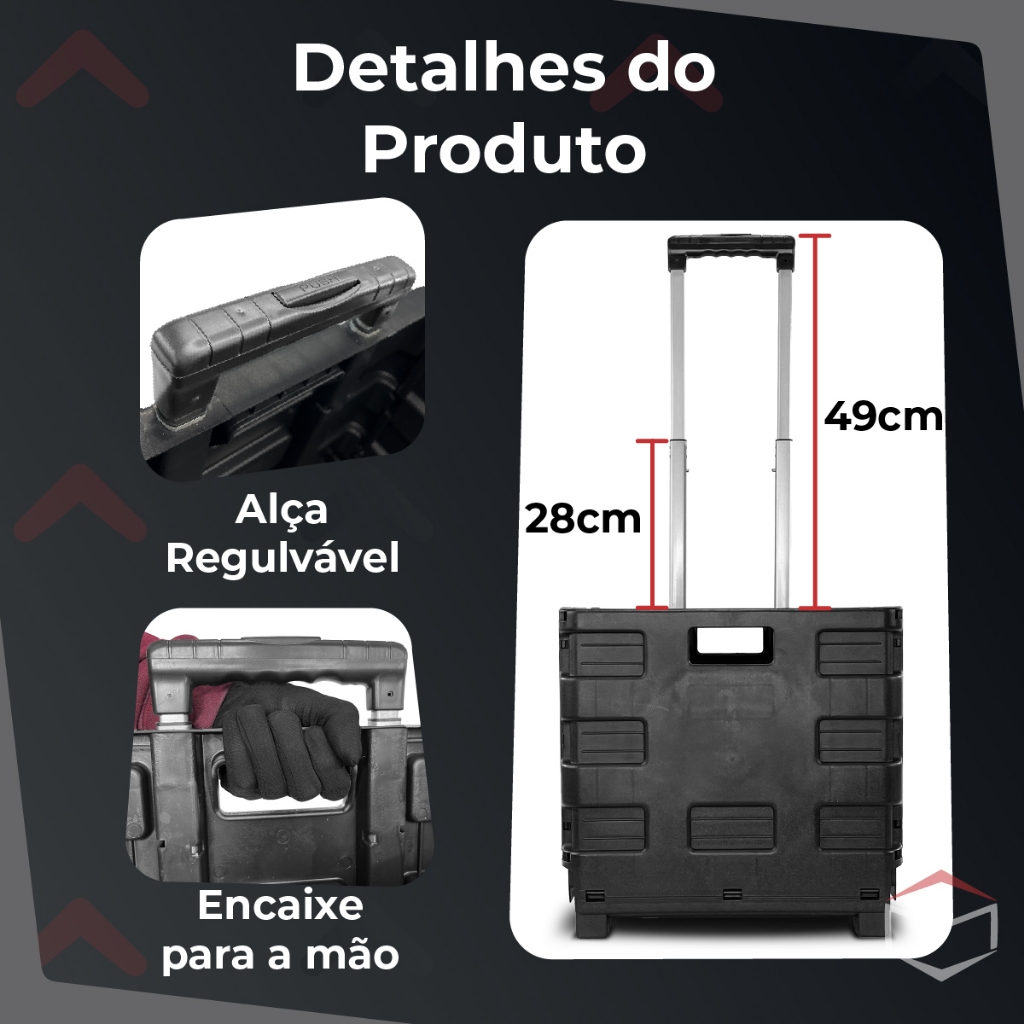 Carrinho Dobrável Multiuso Portátil Vira Maleta Cesto Feira