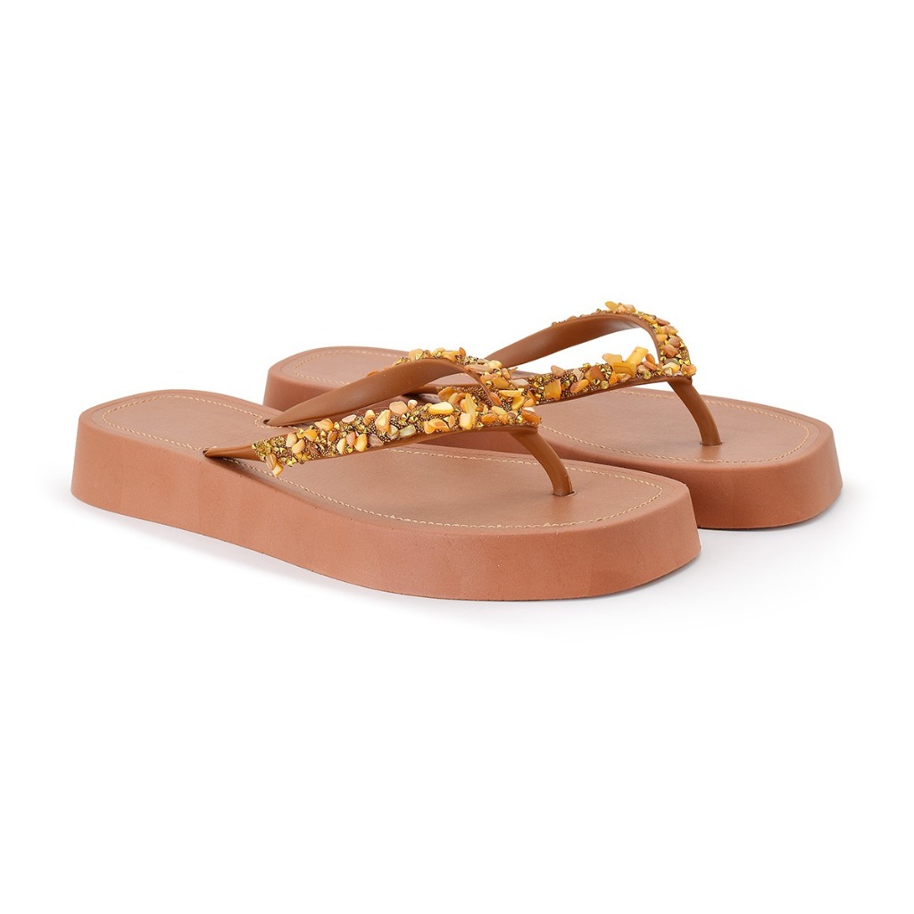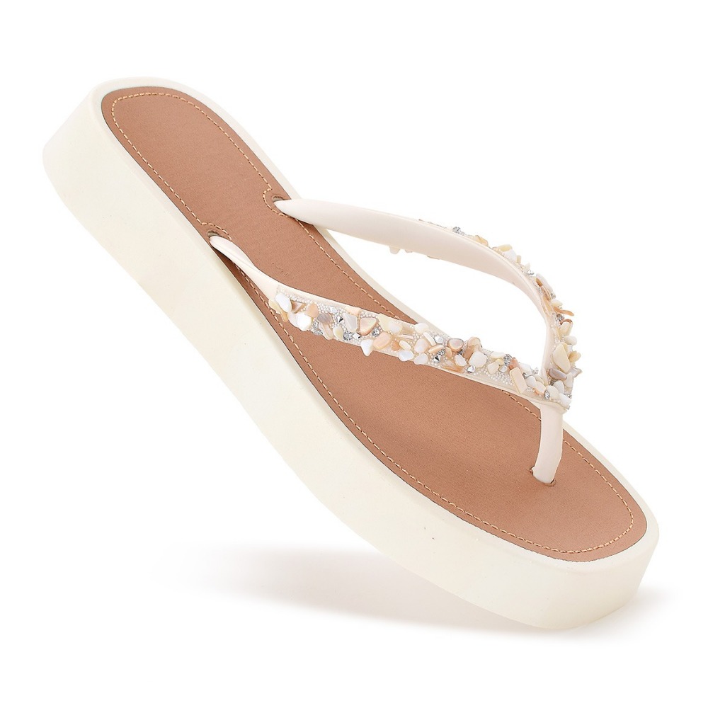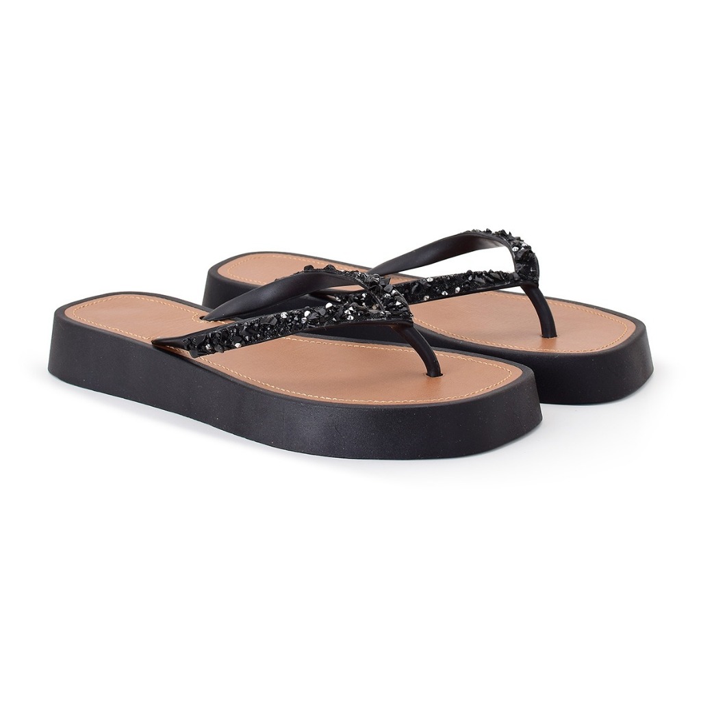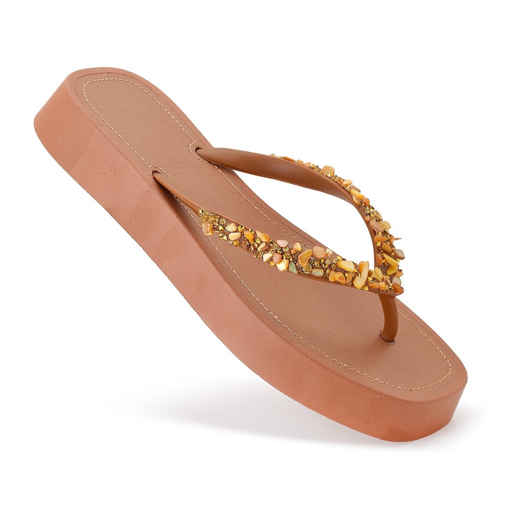 Chinelo Plataforma Feminino Pedraria Cascalho Flat Form Lançamento 34 ao 39