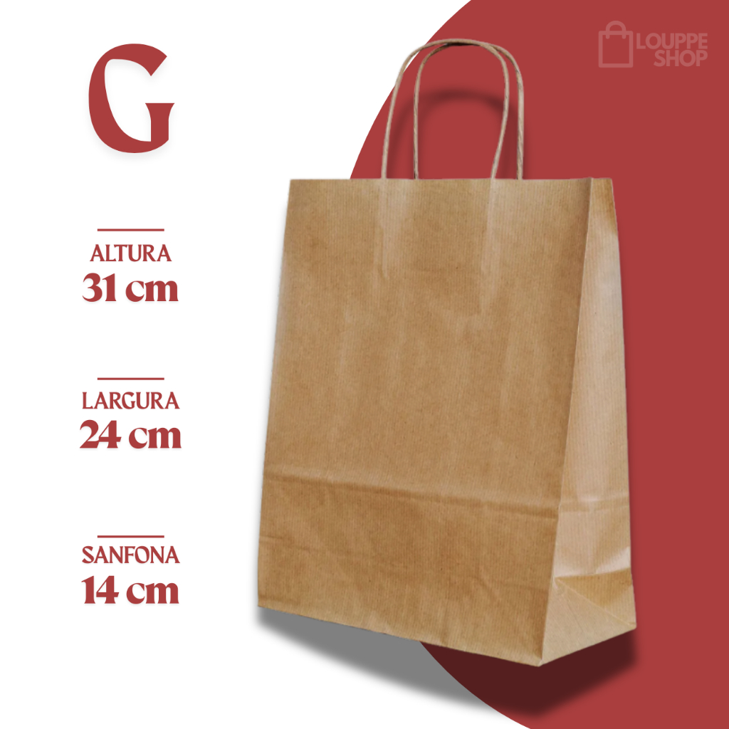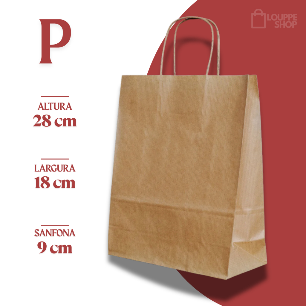 Sacola Papel Kraft Com Alça P, M ou G Com 100 unidades