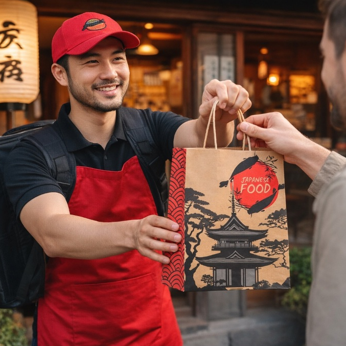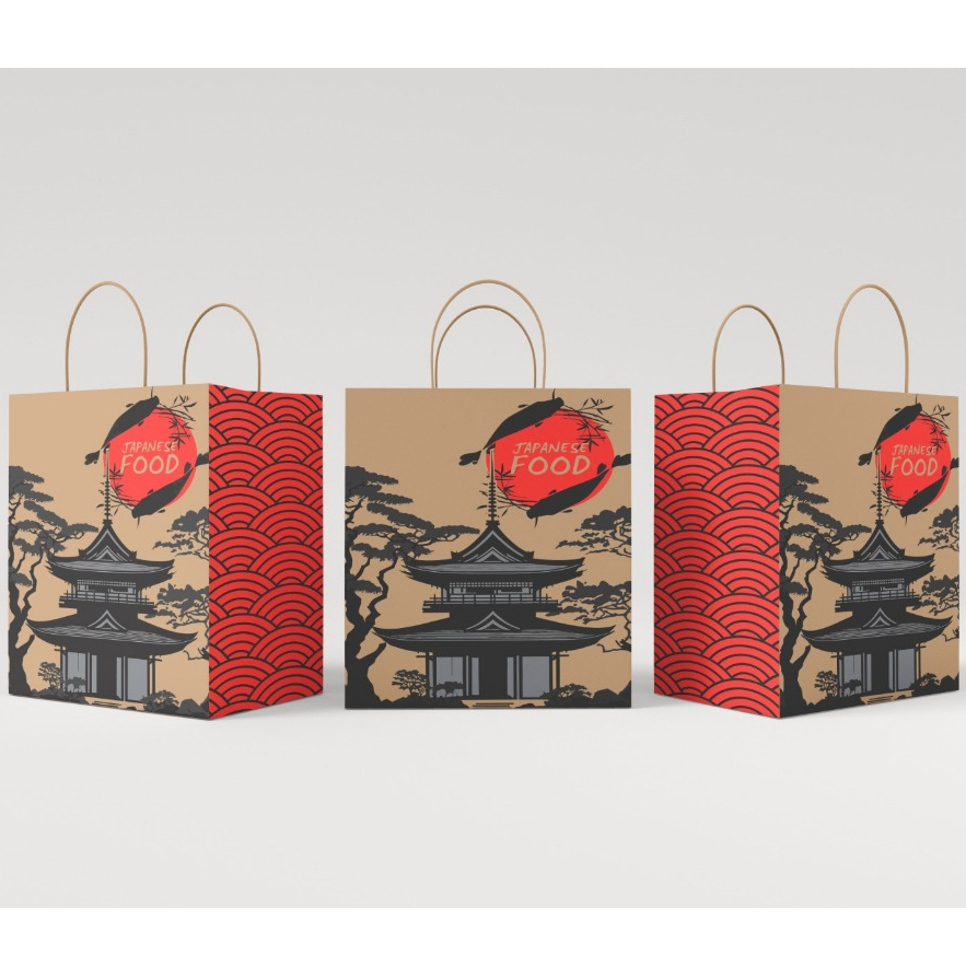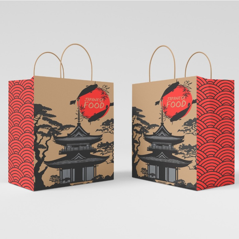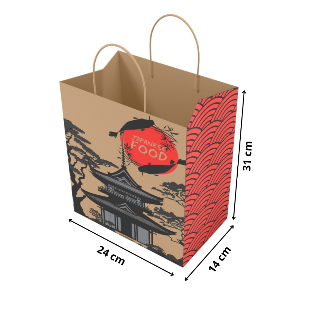 Sacolas Papel Kraft Oriental Sushi C/ 50 Unidades - Restaurante Japonês