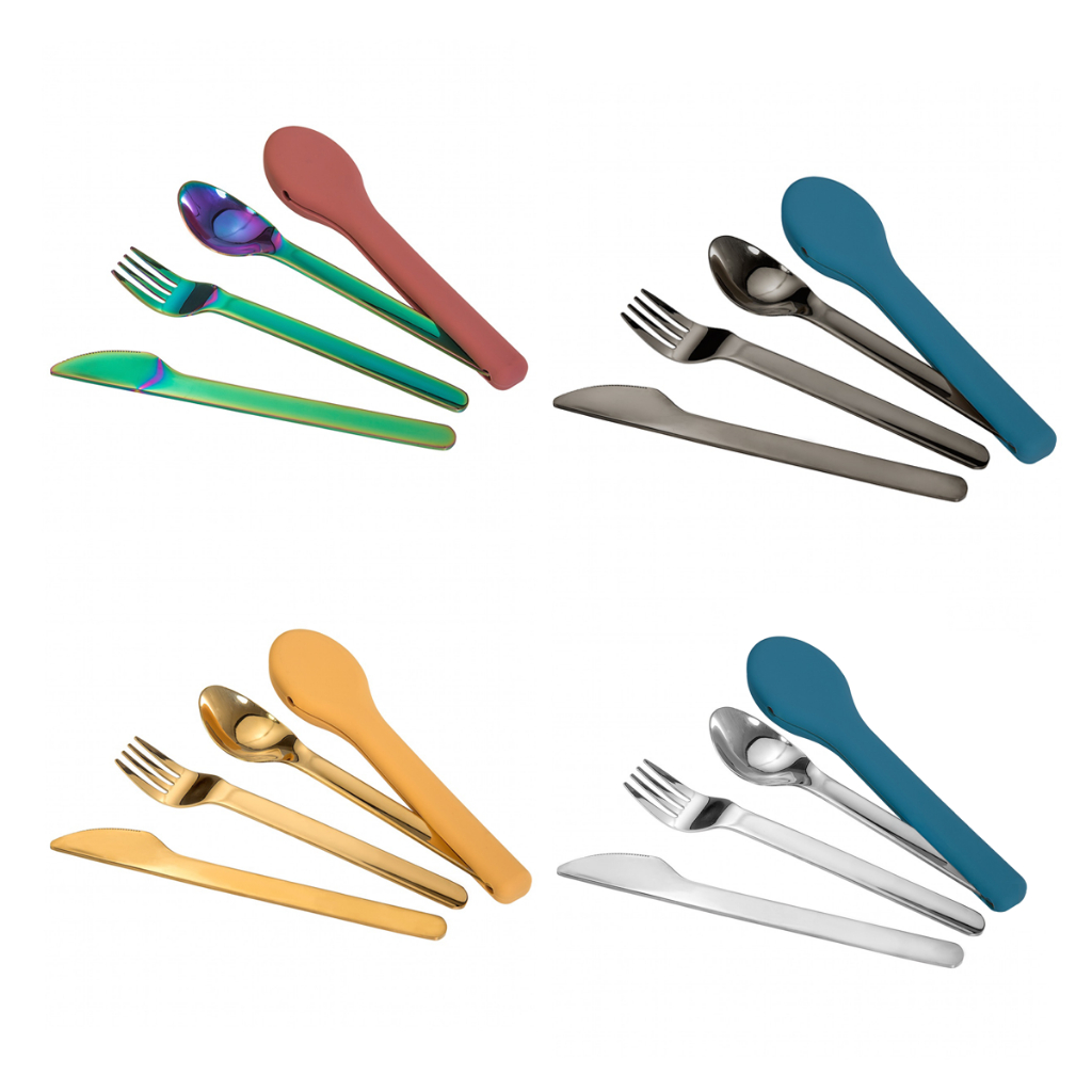 Kit Trio de talheres + Estojo de silicone - Várias Cores