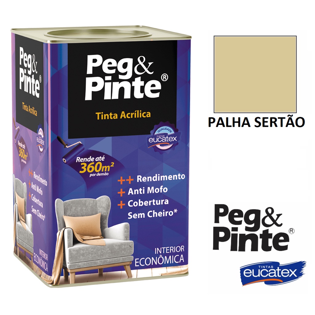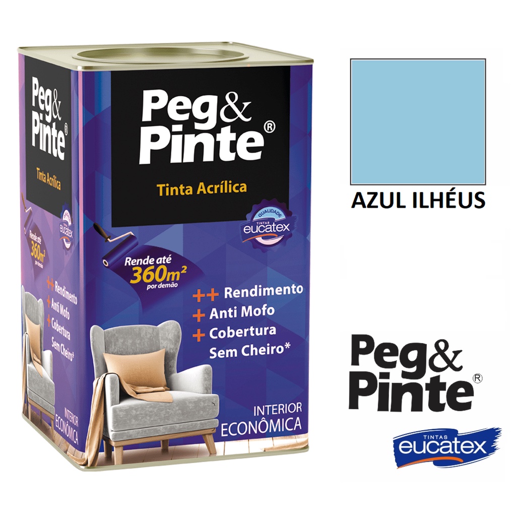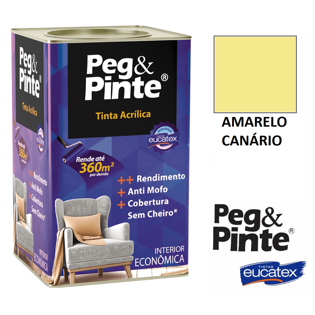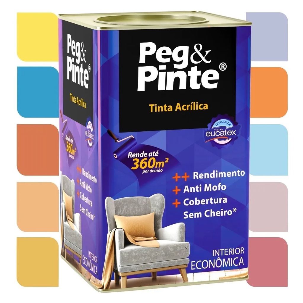 Tinta Eucatex Acrilica Pintura Parede de Interiores Peg E Pinte 18l Cores