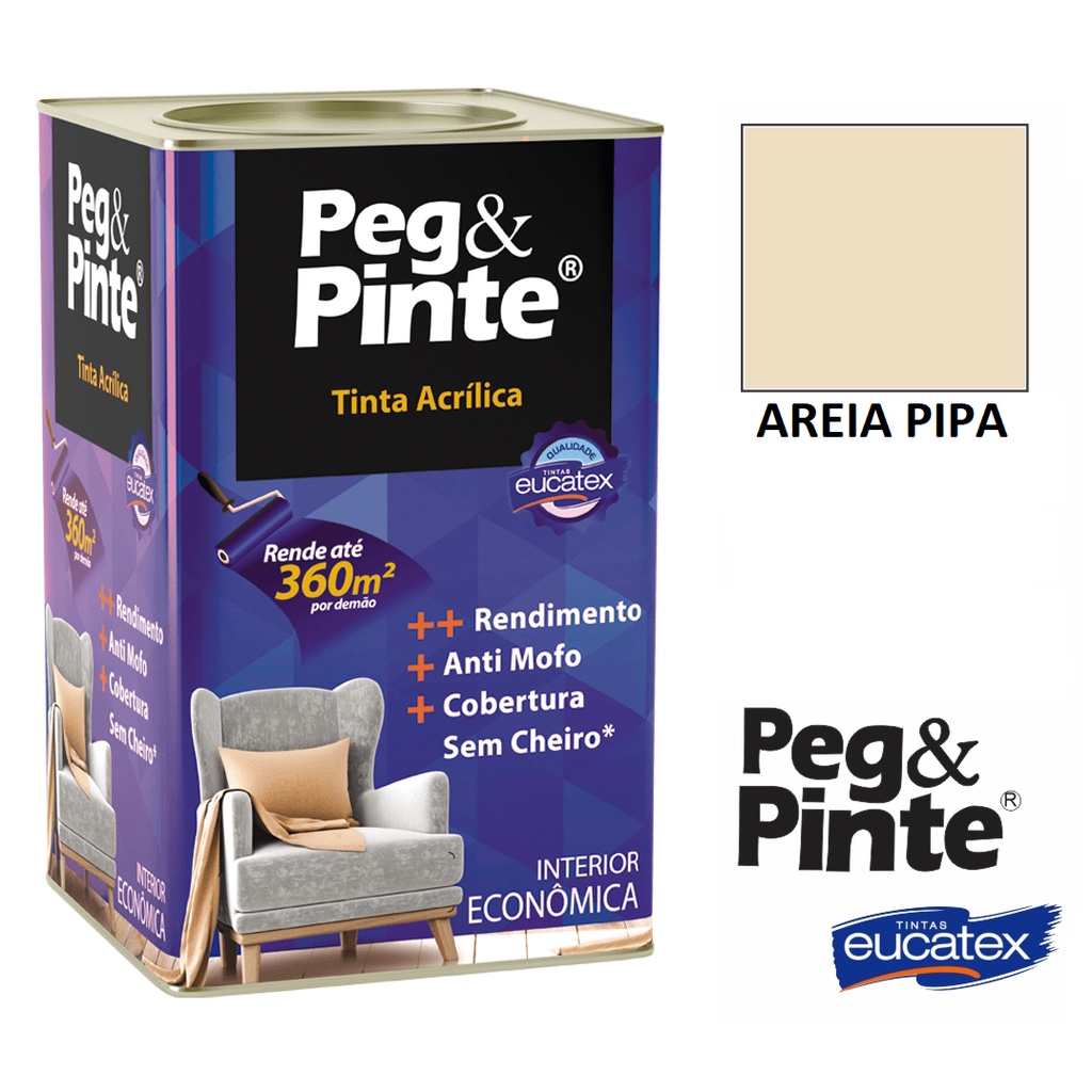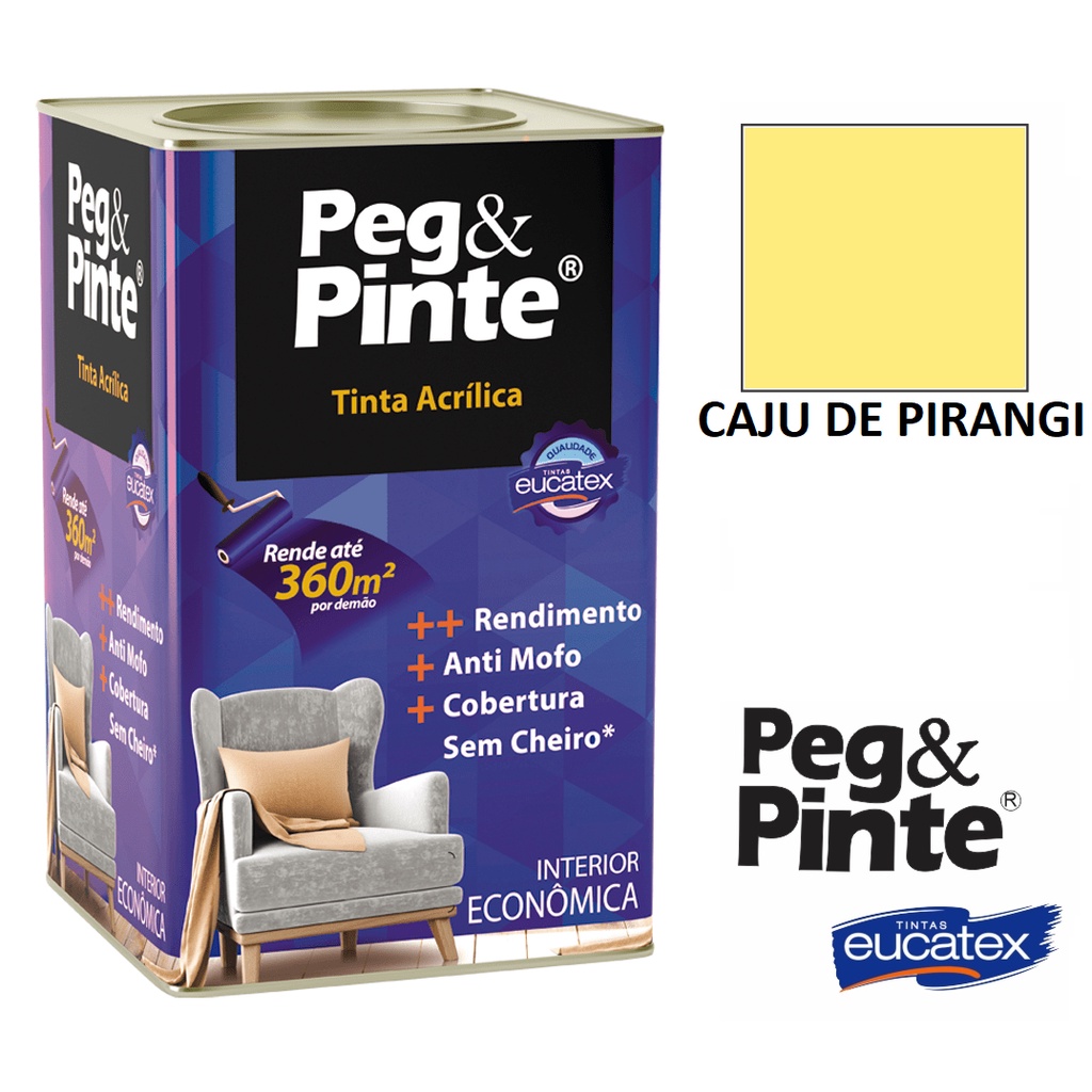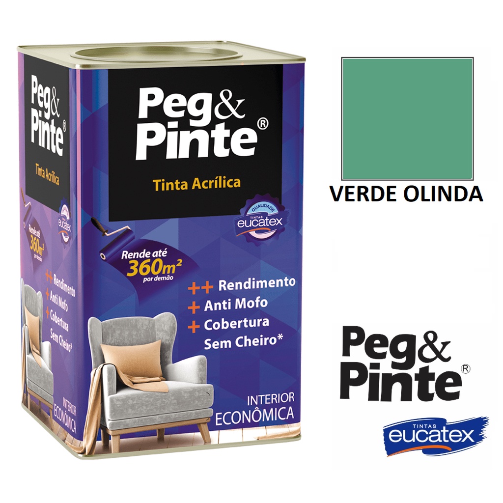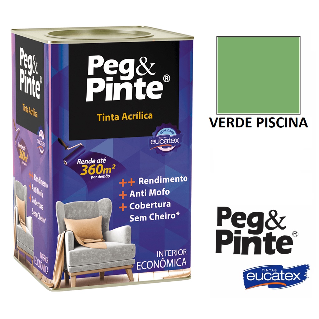 Tinta Eucatex Acrilica Pintura Parede de Interiores Peg E Pinte 18l Cores
