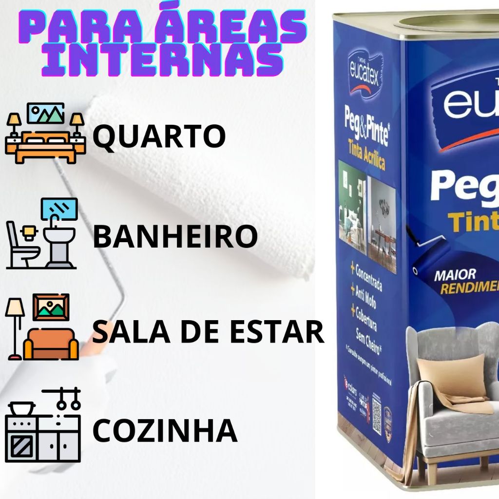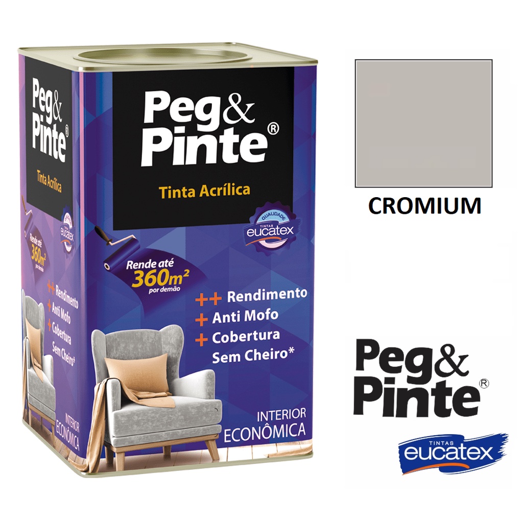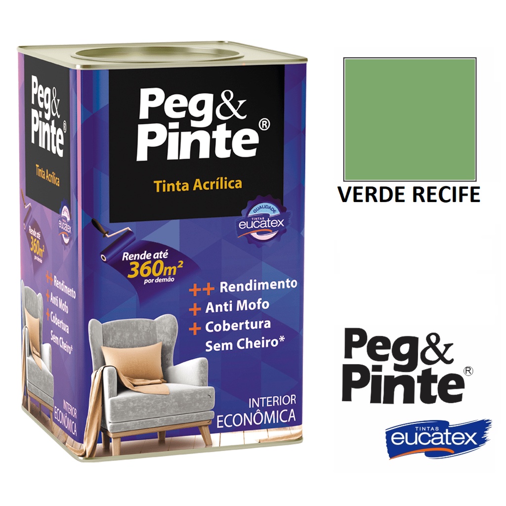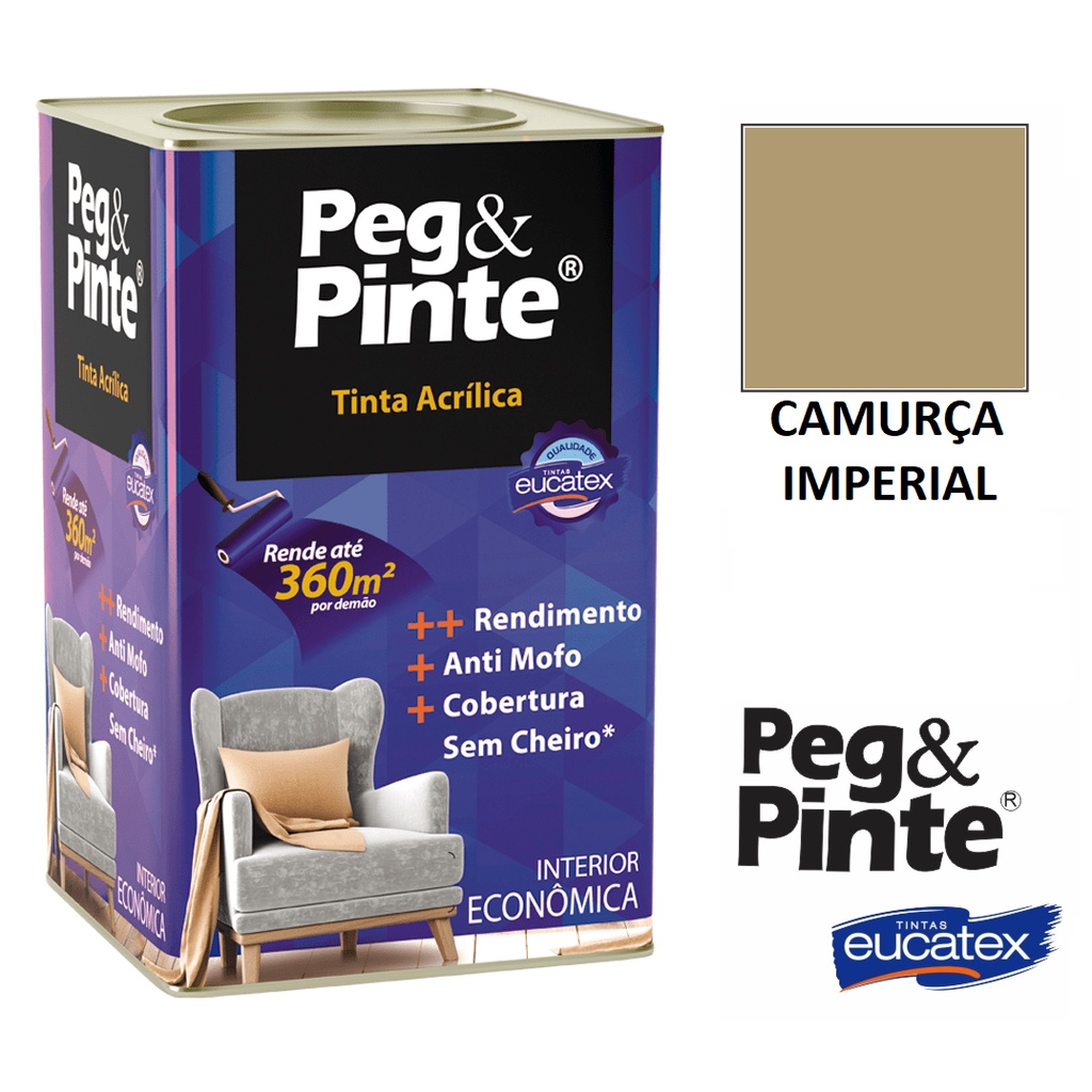 Tinta Eucatex Acrilica Pintura Parede de Interiores Peg E Pinte 18l Cores