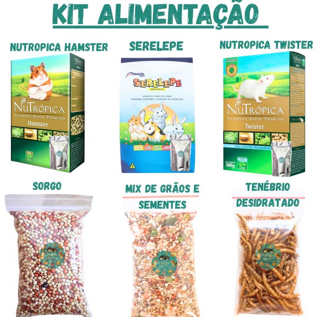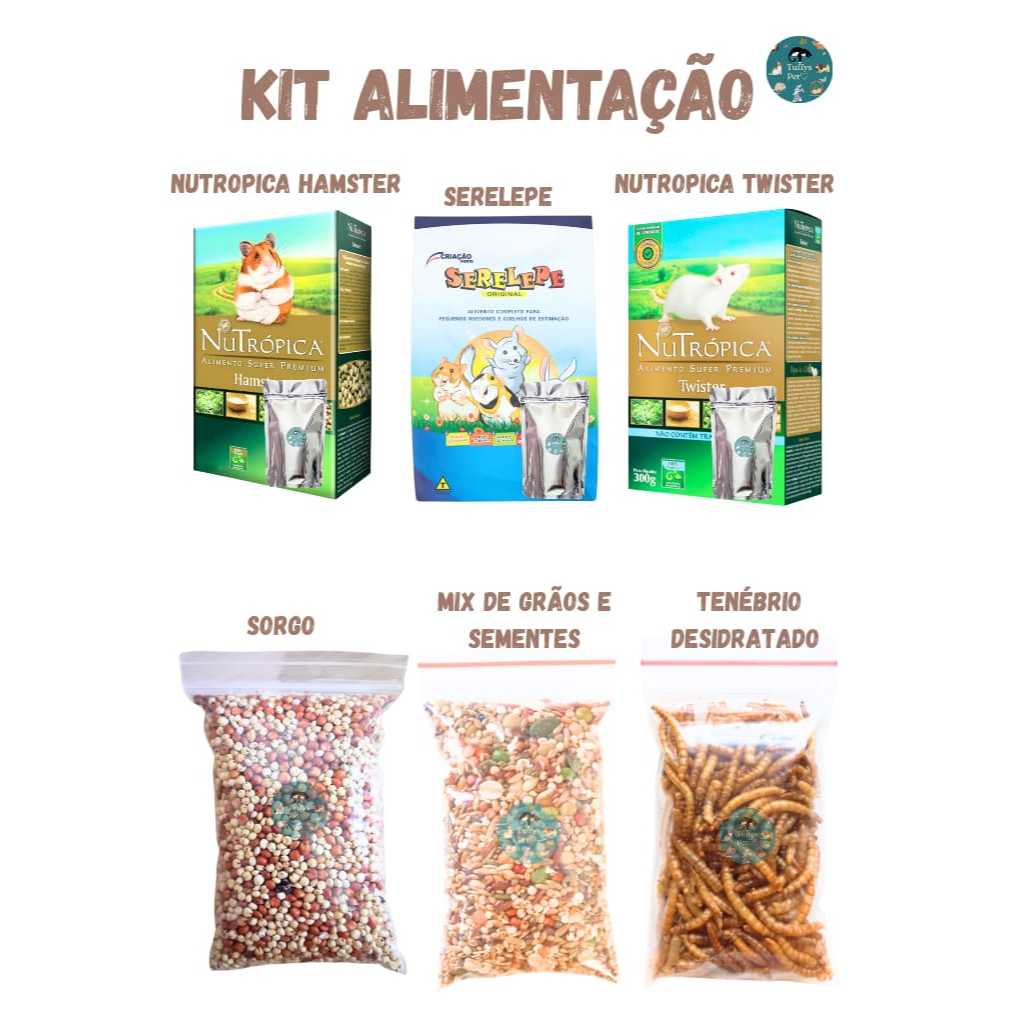 kit alimentação, Nutrópica Hamster+Serelepe, Nutrópica Twister, Sorgo, Proteína, Mix de Sementes