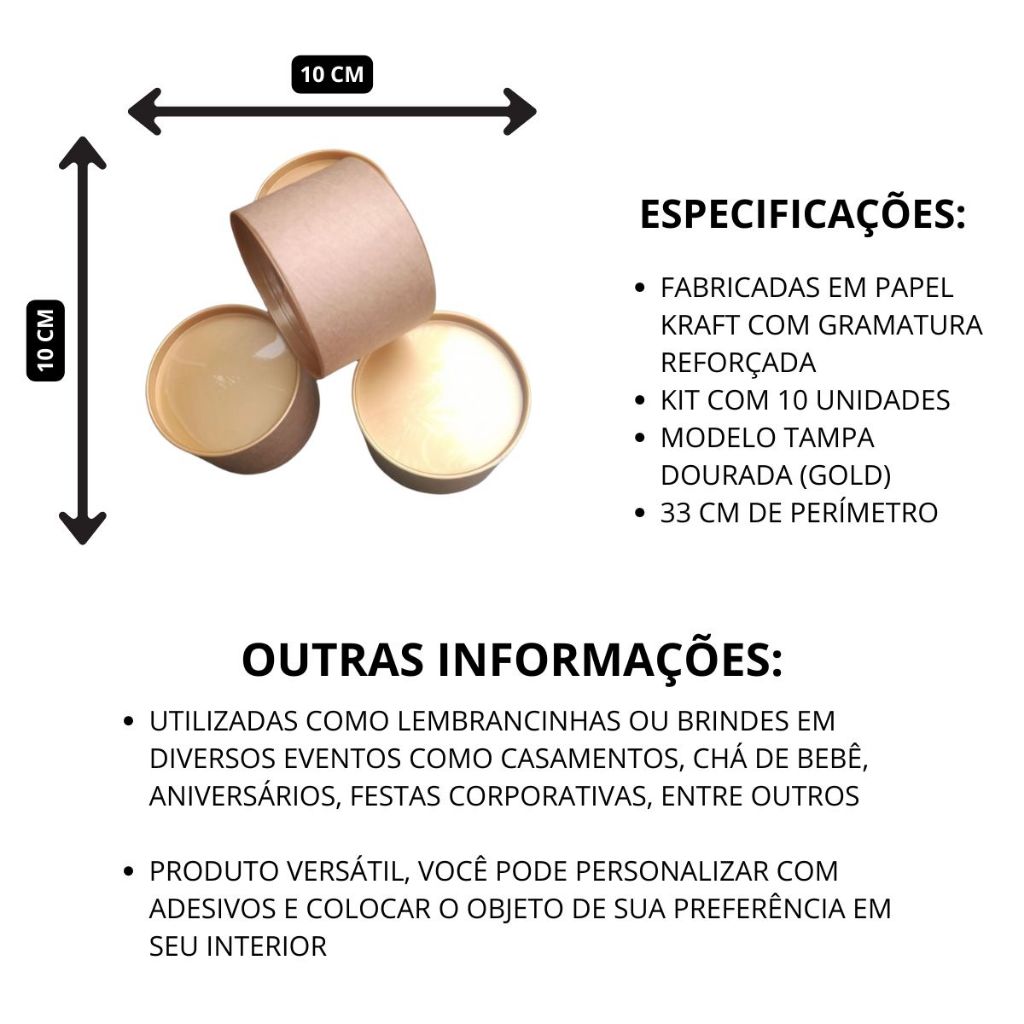 10 Tubo Lata 10x10 tampa dourada. para Personalizar TUBO LATA Tampa Gold
