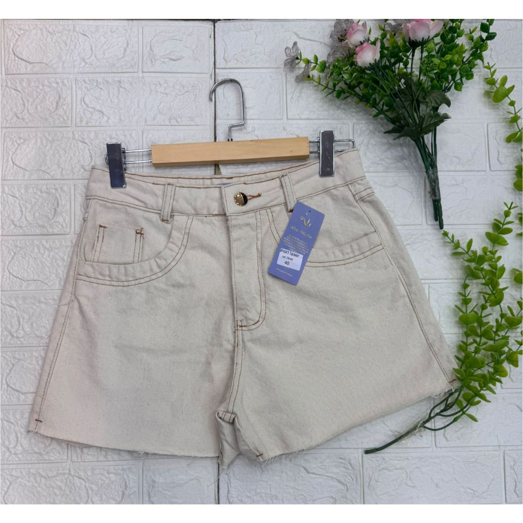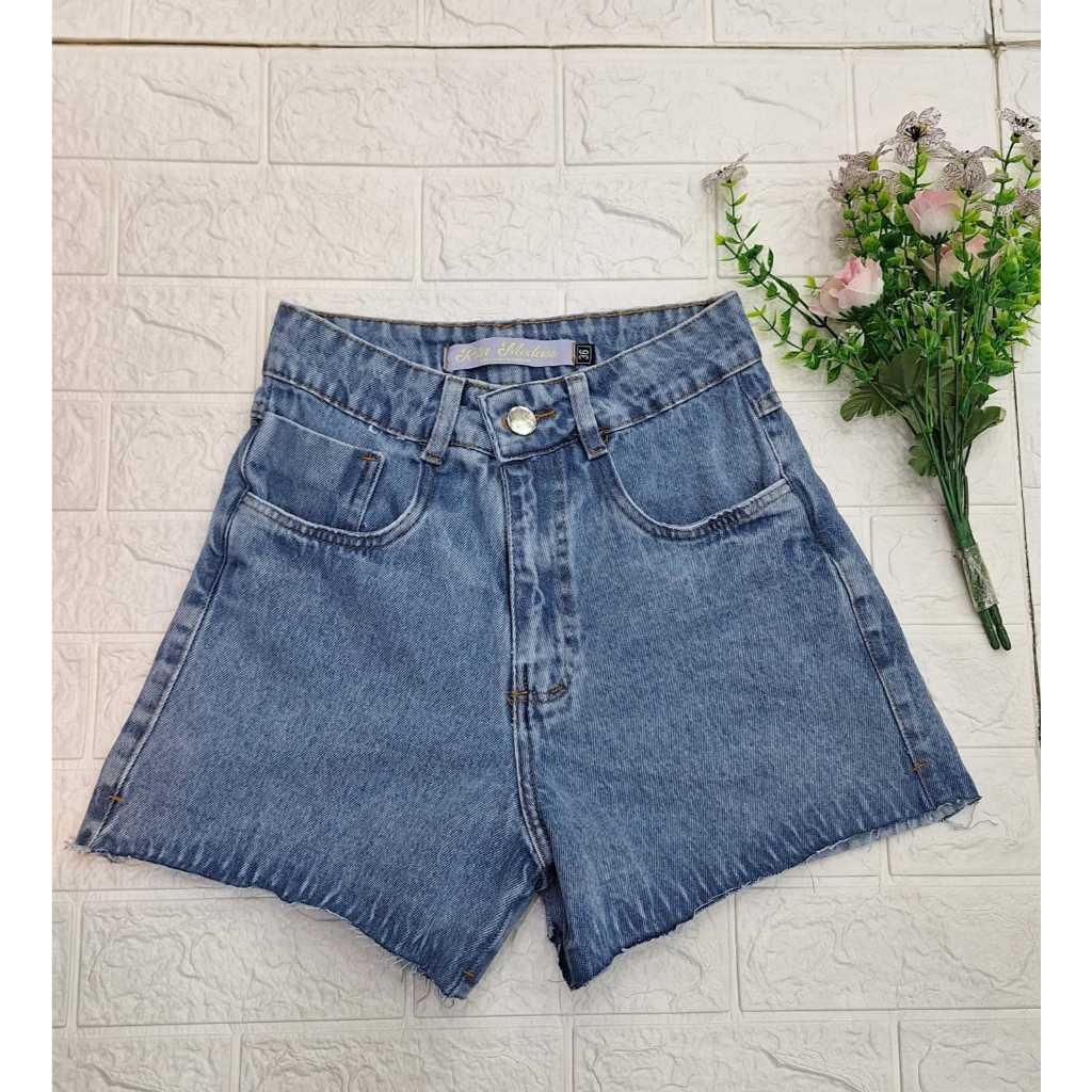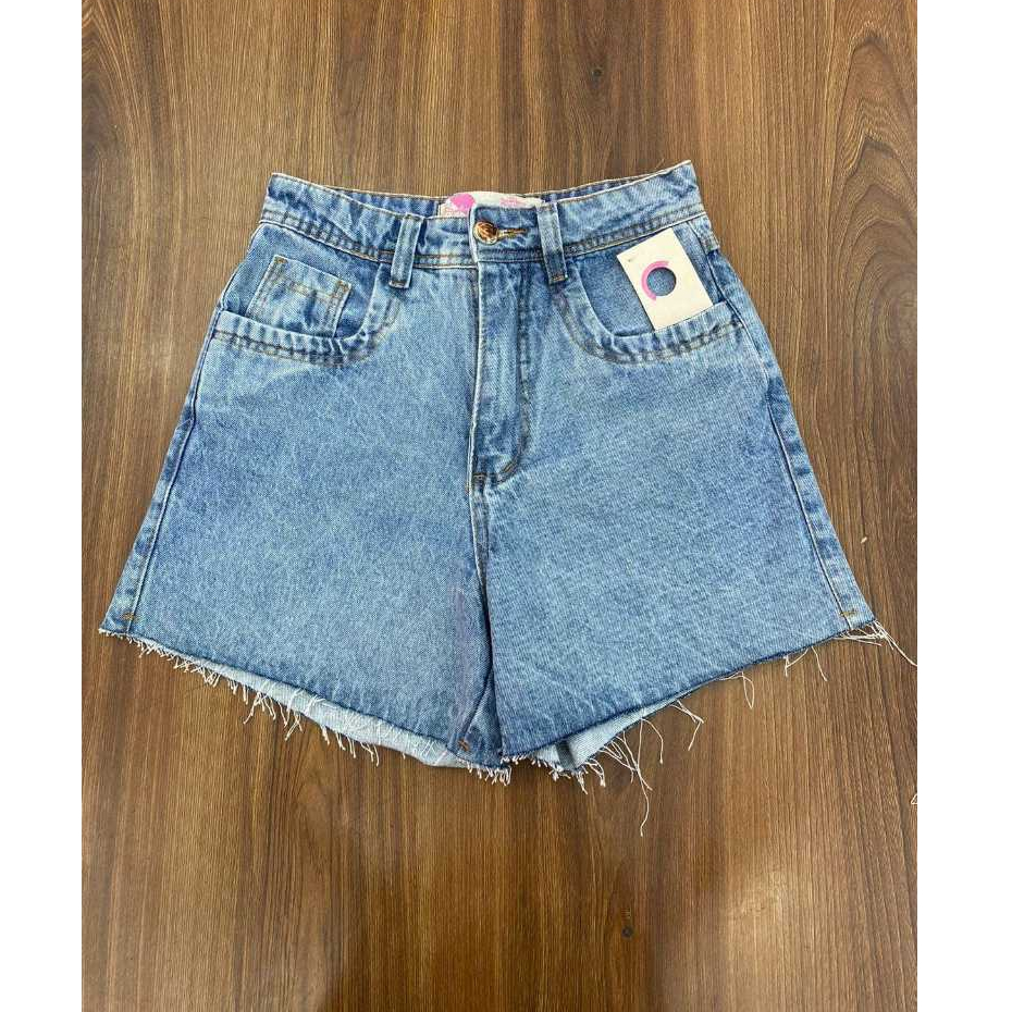 NOVO SHORT BARRA DESFIADA LASER, JEANS MARMORIZADO