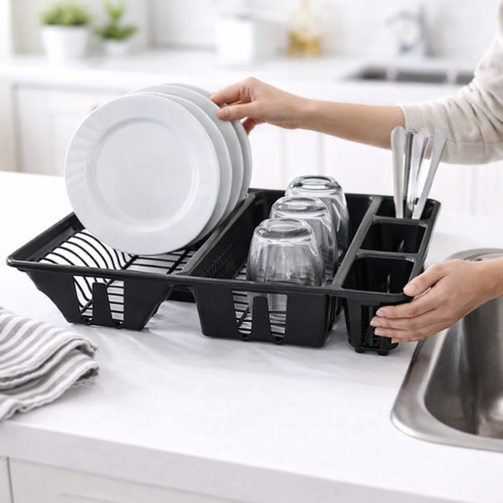 Escorredor de Louça Grande com Porta Talheres e Copos – Organizador para Pia Resistente e Moderno