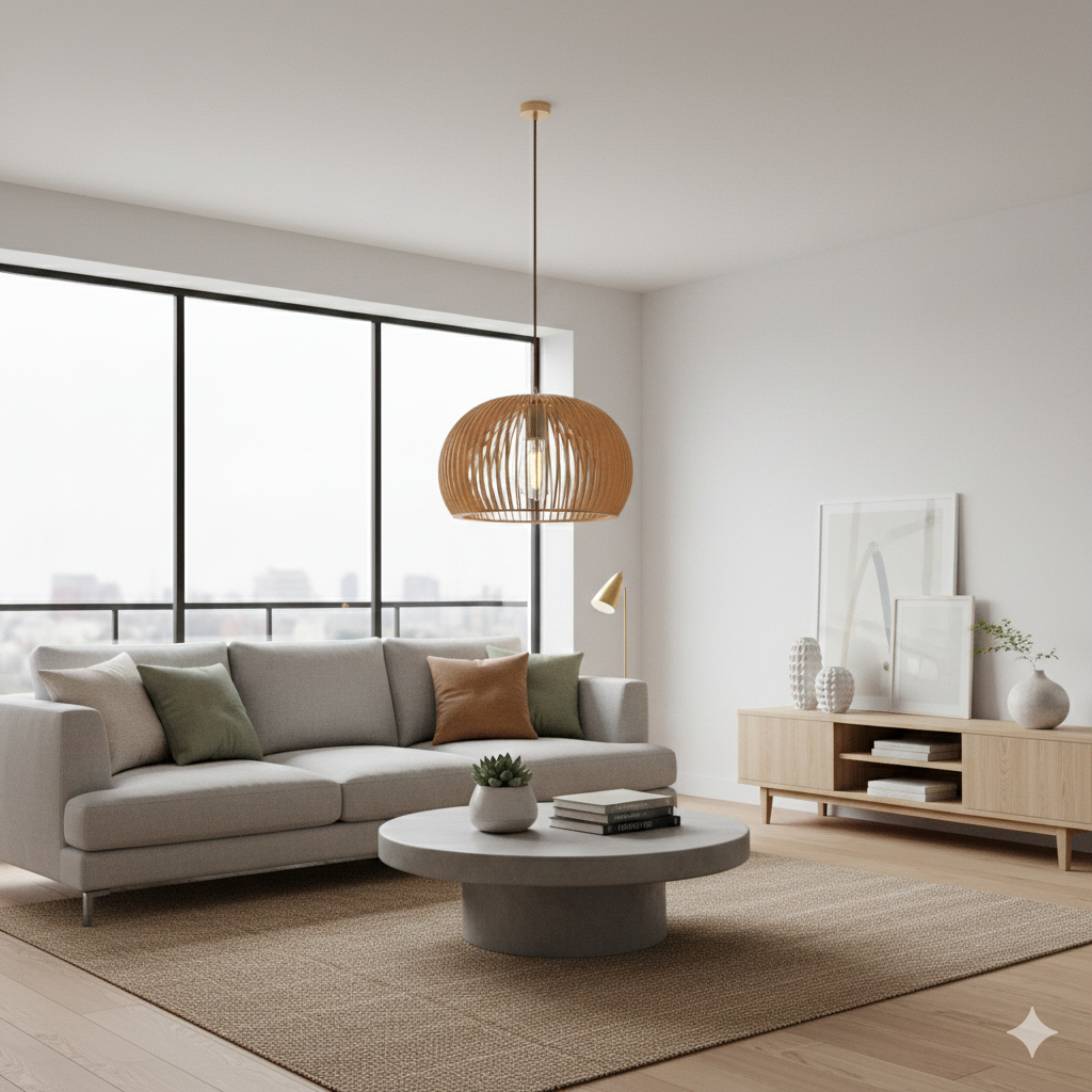 Pendente de Teto Lustre Grande de Sala Madeira Mdf Decoração Cru