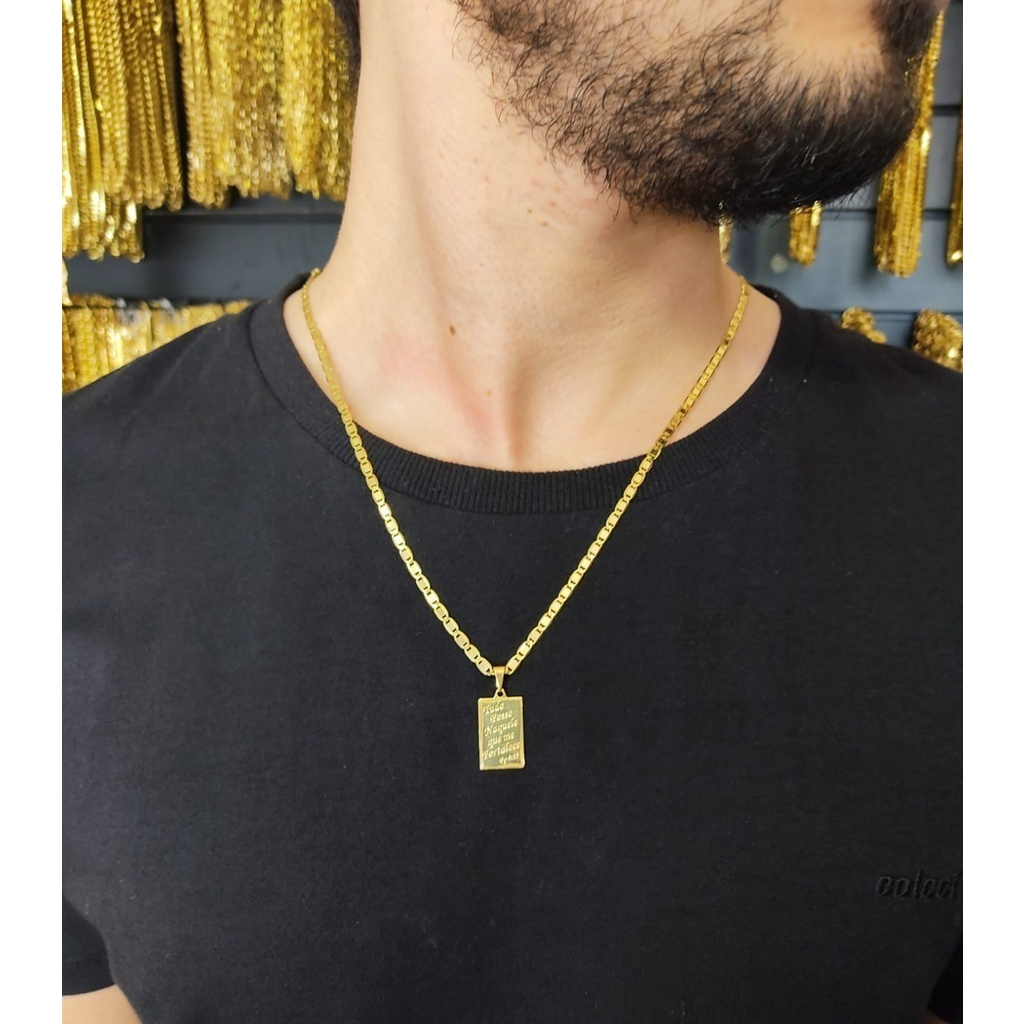 Kit Conjunto Corrente Masculino Com Pulseira E Pingente Tudo Posso 100% Moeda Antiga