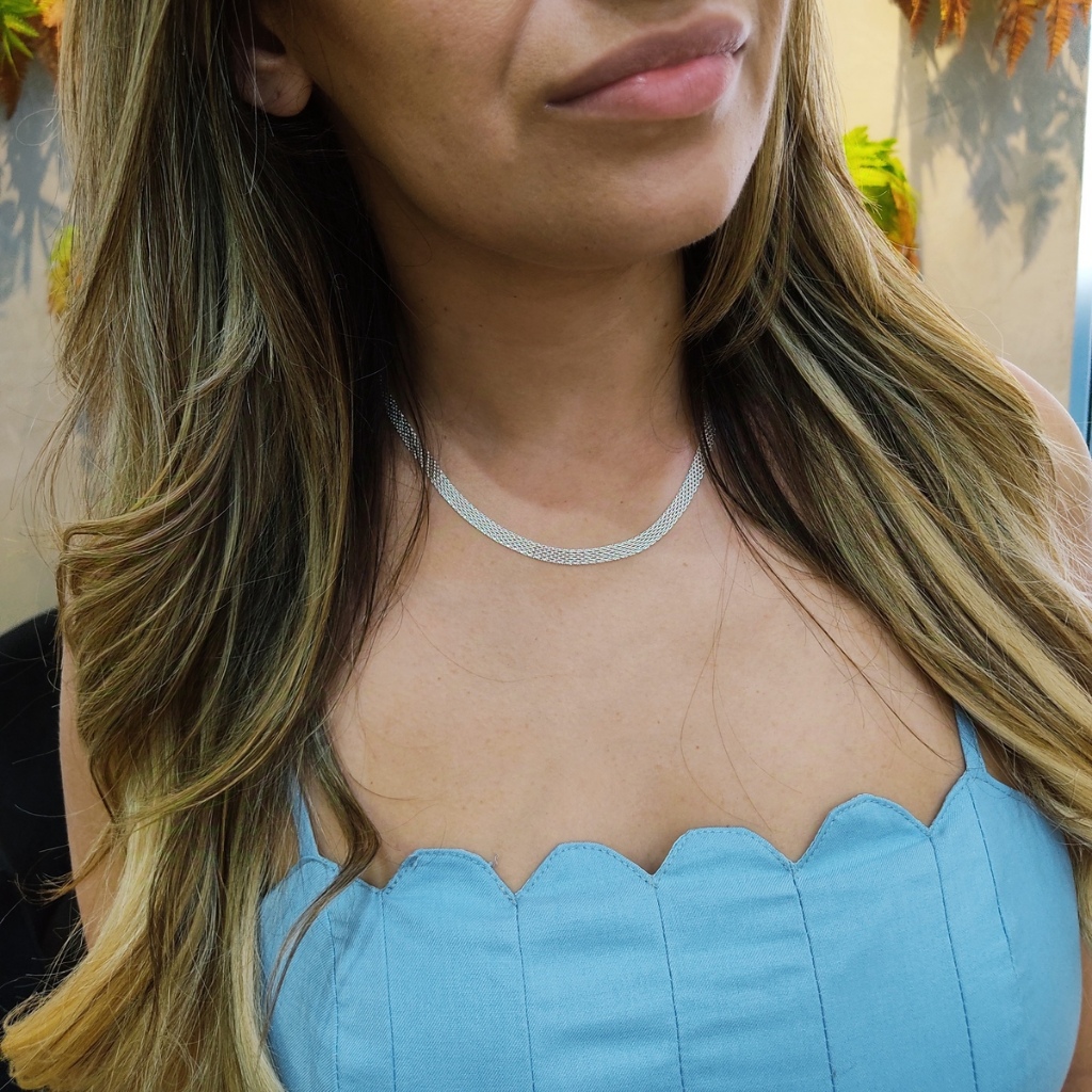 Colar Cordão Feminino Laminado Esteira 6mm Prata 925 Legítima 45cm