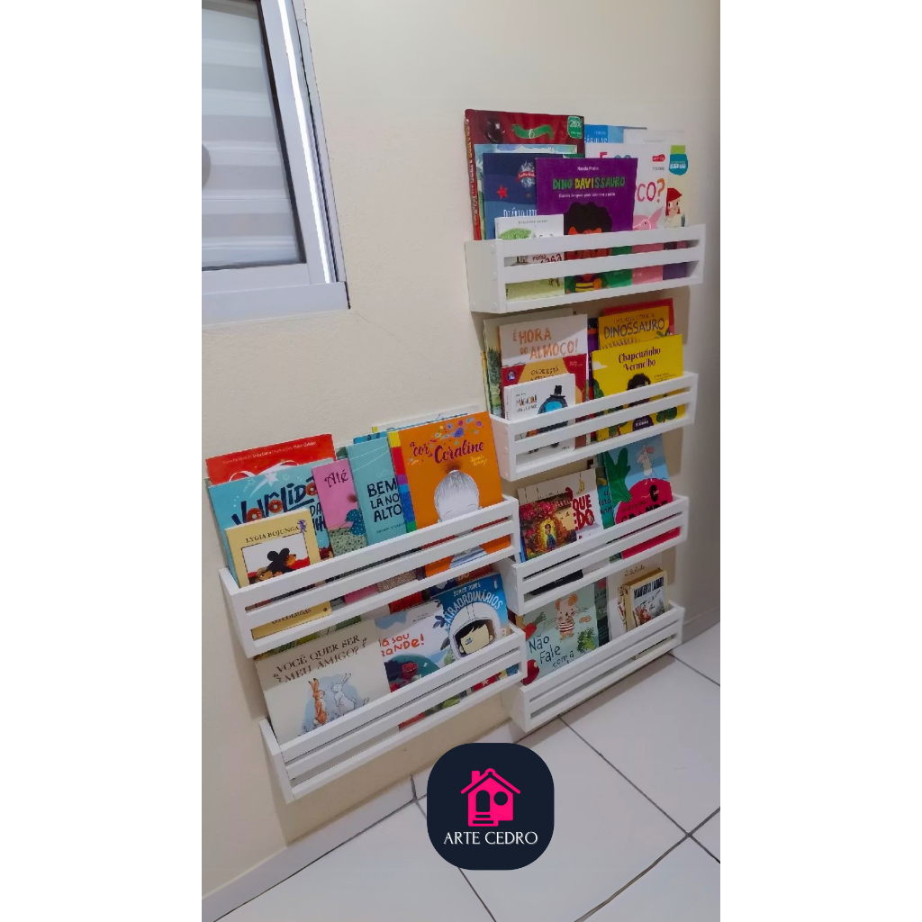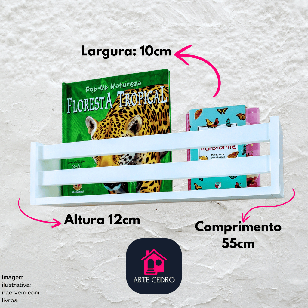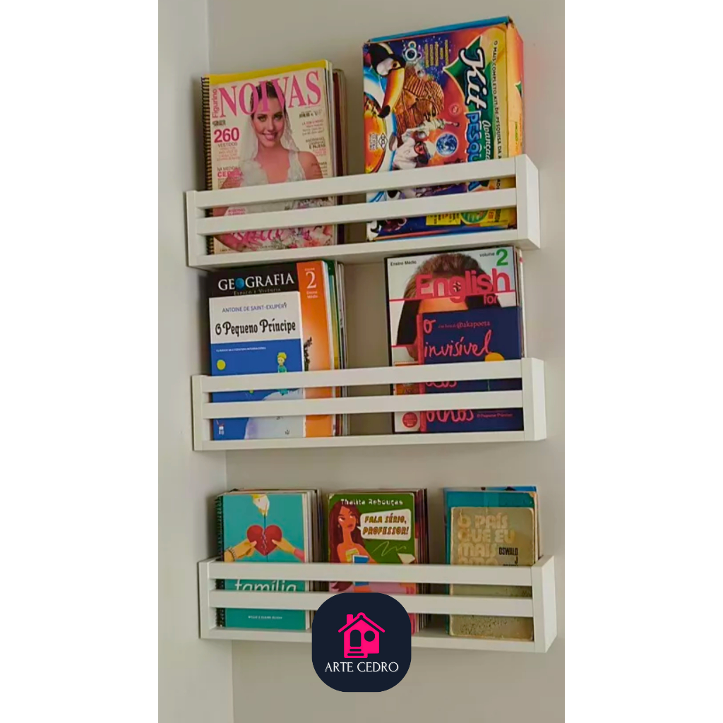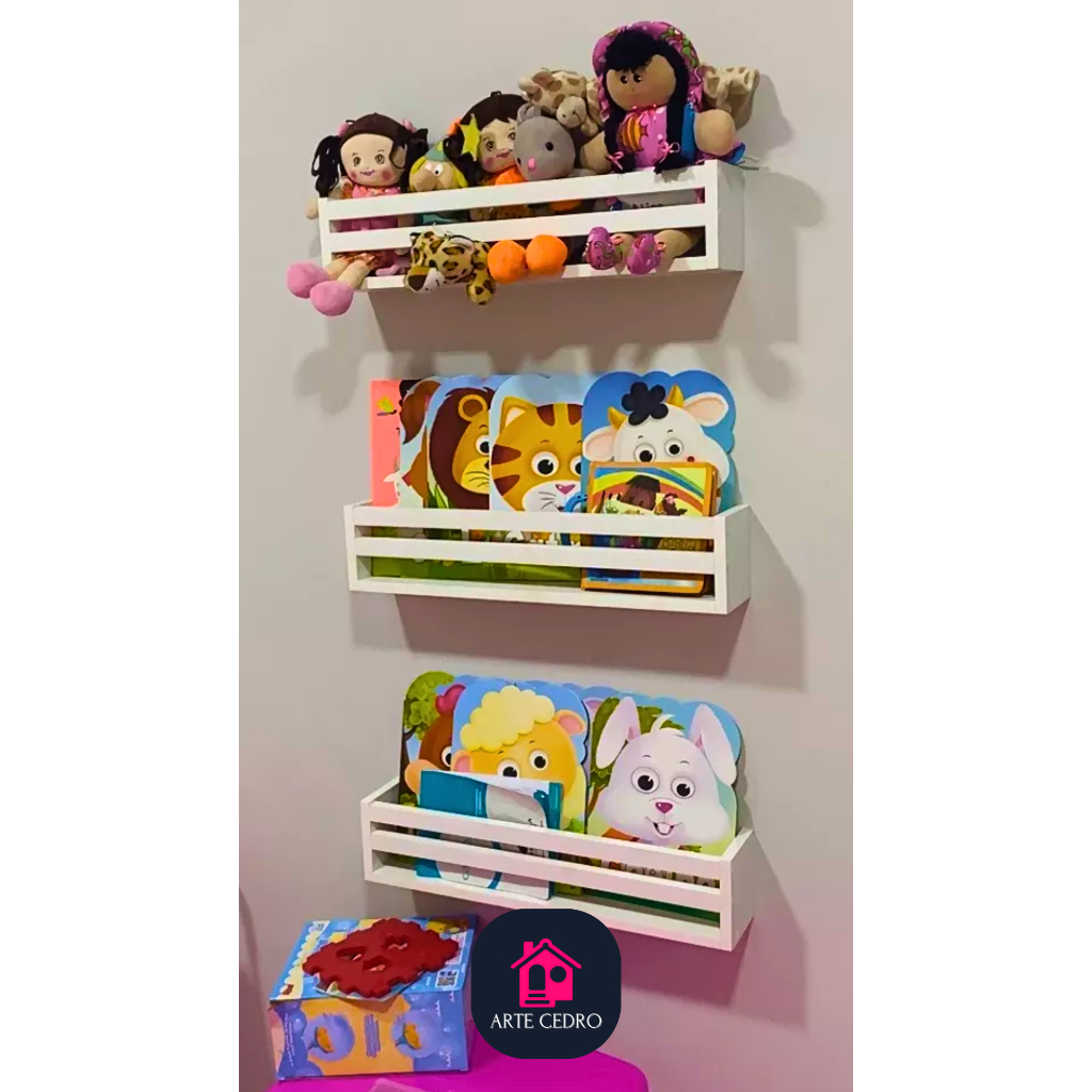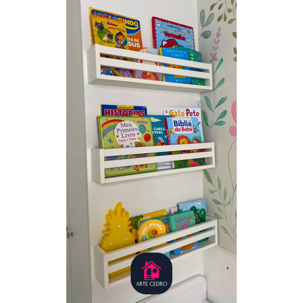Kit 3 Prateleiras Porta Livros Infantil Para Organização De Quarto De Bebê Cozinha Banheiro Nicho Mdf 55 cm