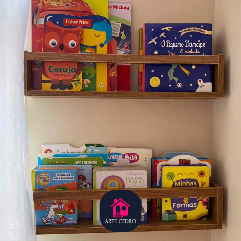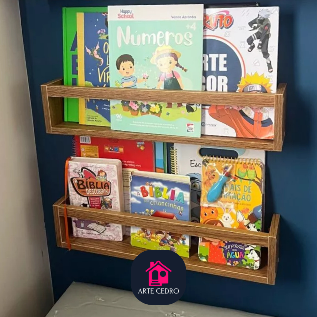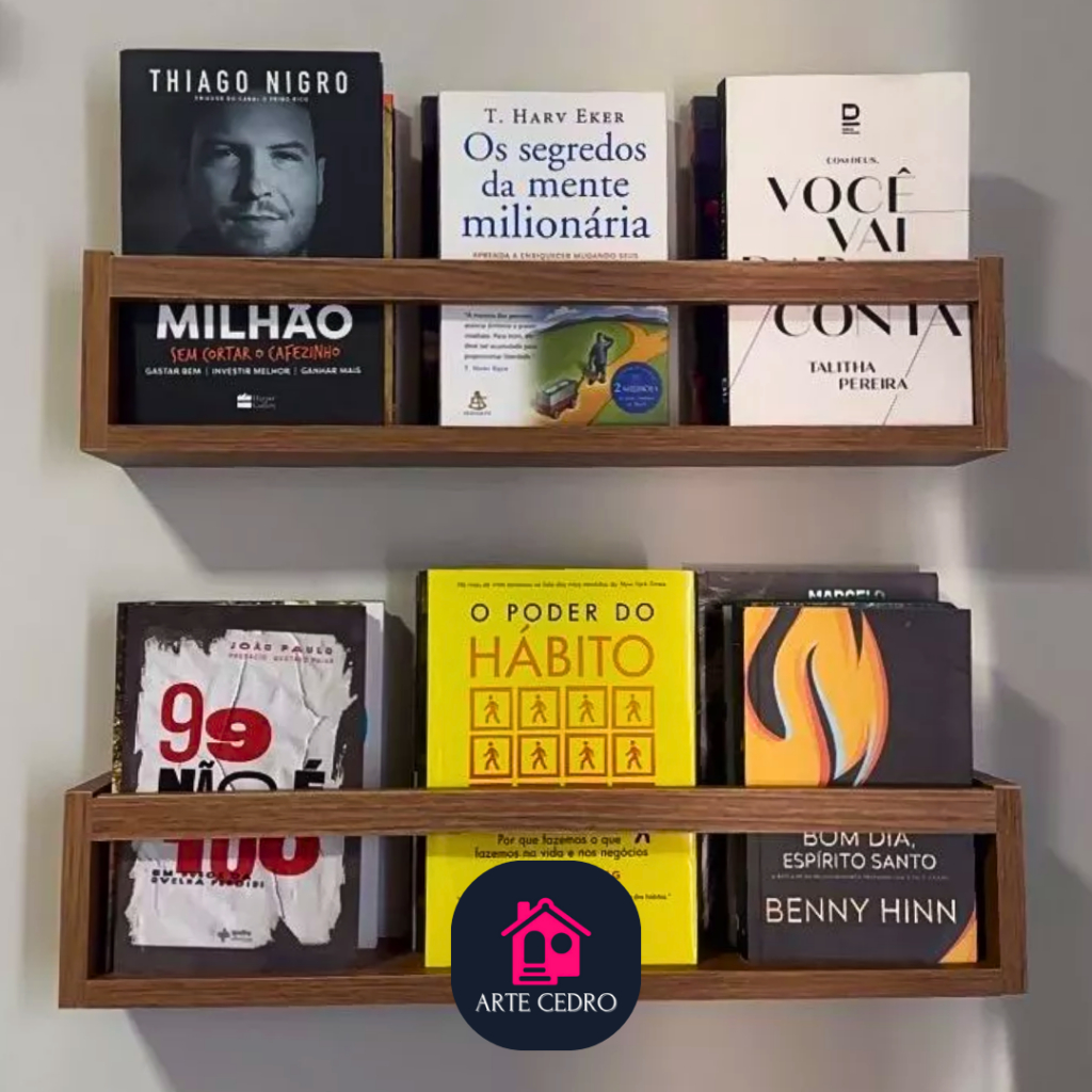 Kit de Prateleiras Para Livros e Revistas Estante Revisteiro Organizador Nixo Mdf Madeira 2un 55 cm