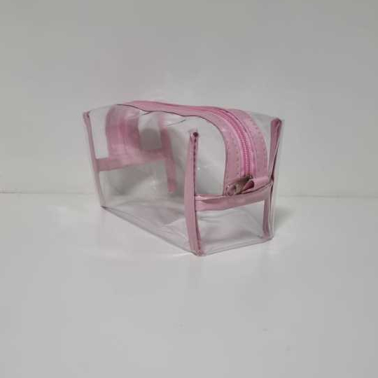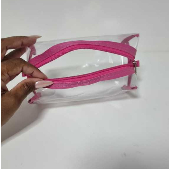 Kit Necessaire Estojo 10 Peças Plástico Cristal Transparente Organizadora Ziper Varias Cores Multiuso