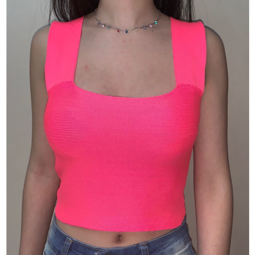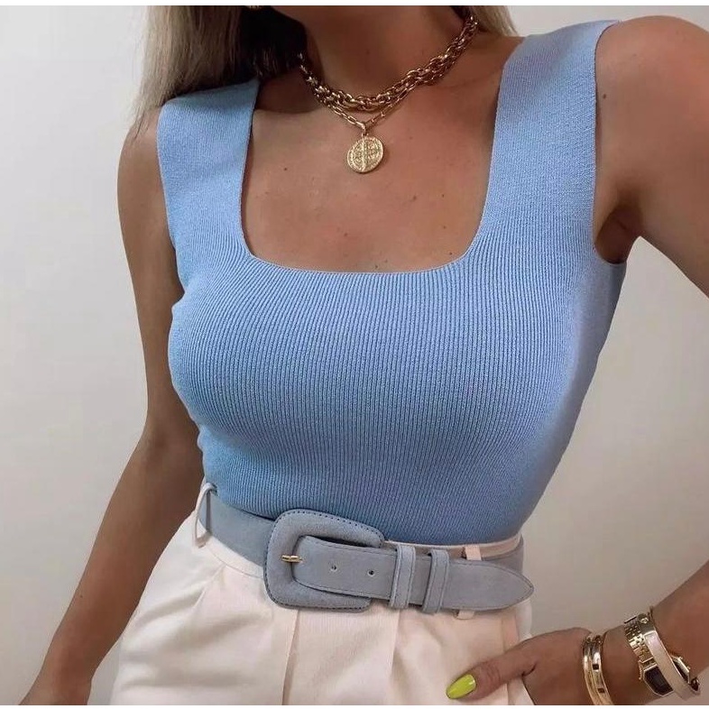 Cropped Modal Tricot Alça Grossa Tulum Moda Verão Feminina Blogueira Primavera/Verão