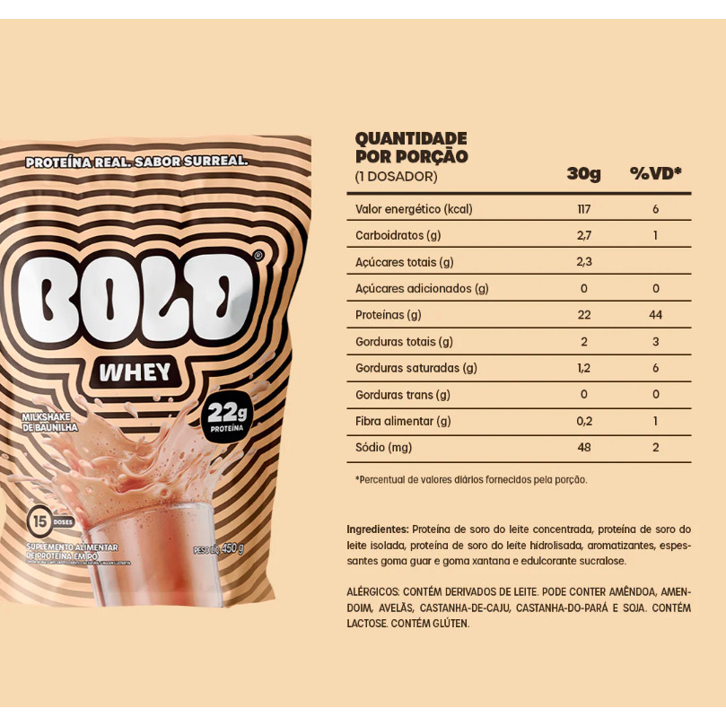 Bold Whey Protein 450g Milkshake de Baunilha – Suplemento Proteico Original