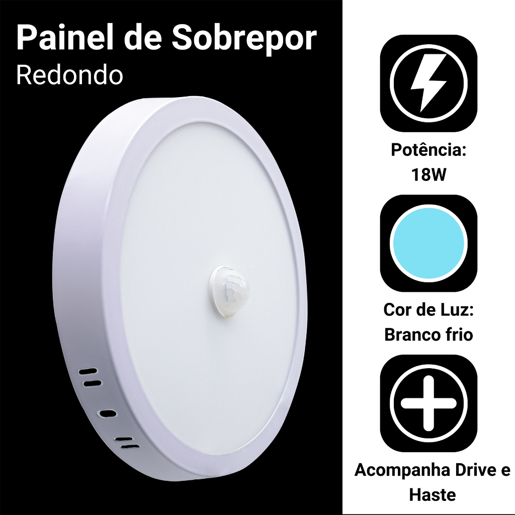 Painel Plafon Led Com Sensor Presença 18w Sobrepor Redondo Luz Frio
