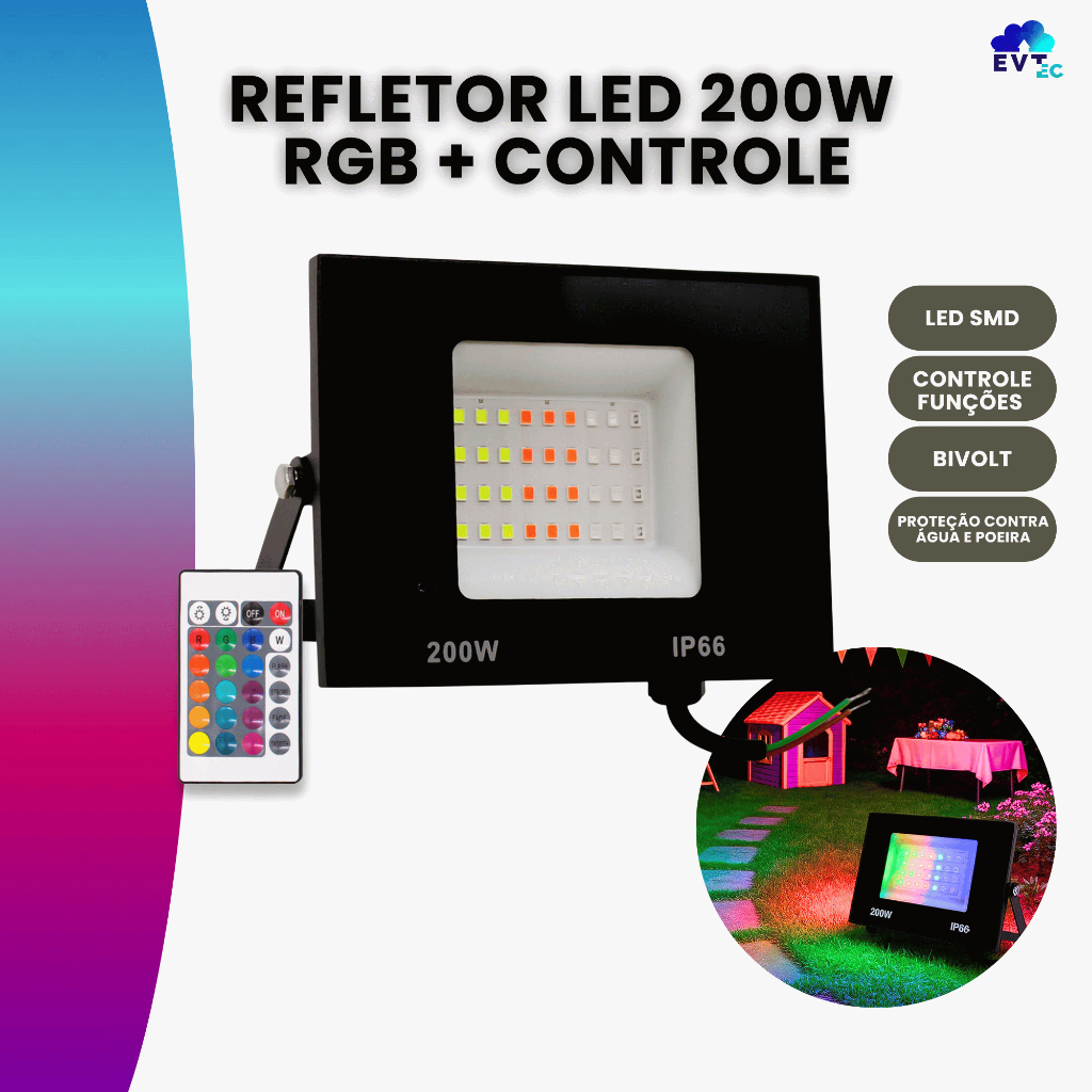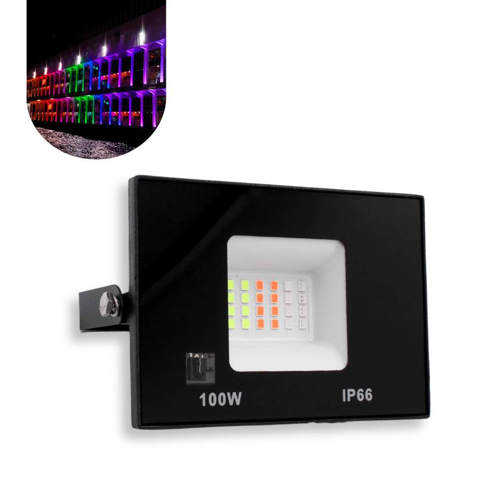 Refletor Led Holofote Rgb Colorido 50w/100w/200w/300w/400w Bivolt C/ Controle