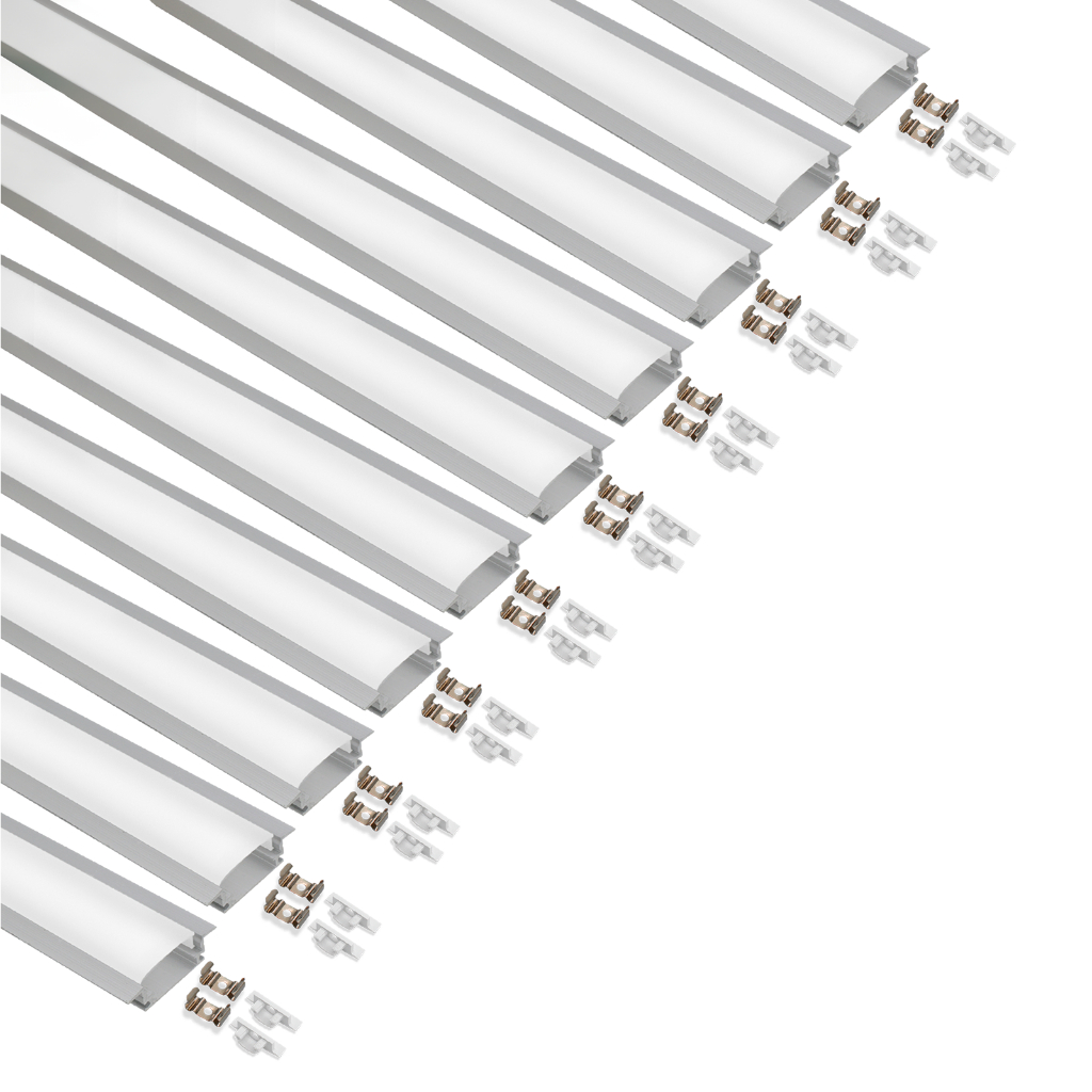 Kit 10 Metros Perfil Alumínio Embutir Slim Para Fita Led Preto Branco Cinza Dourado