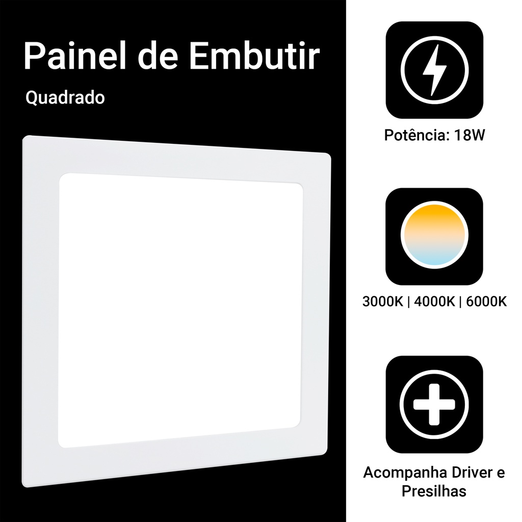 Kit 4 Led Painel Plafon Embutir 18w Quadrado Slim Luz Frio Forte