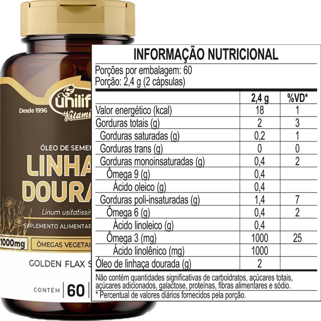 KIT 3x Óleo De Linhaça Dourada - 60 Cápsulas 1000mg - Unilife Vitamins