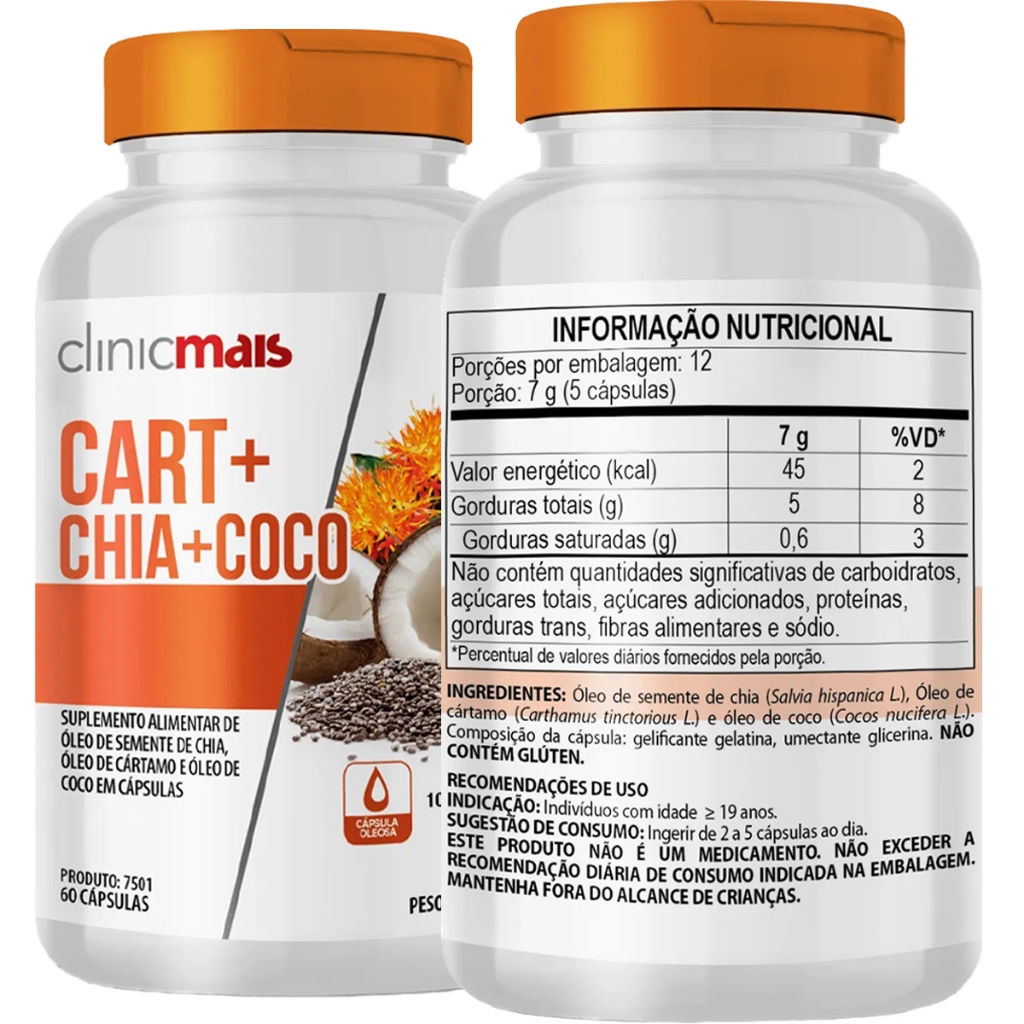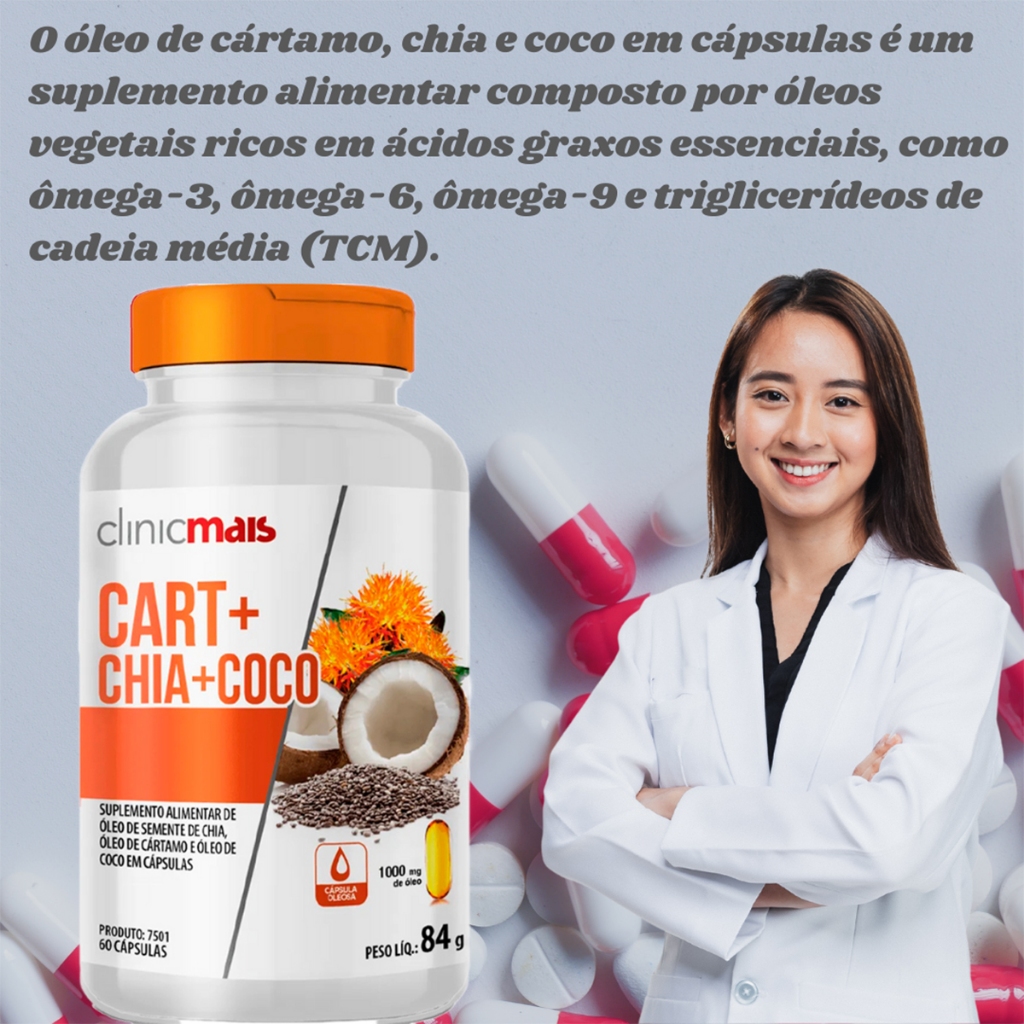 Óleo De Cártamo + Chia + Coco - 60 Cápsulas 1000mg - Clinicmais
