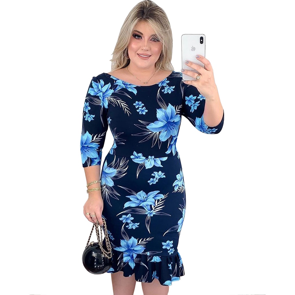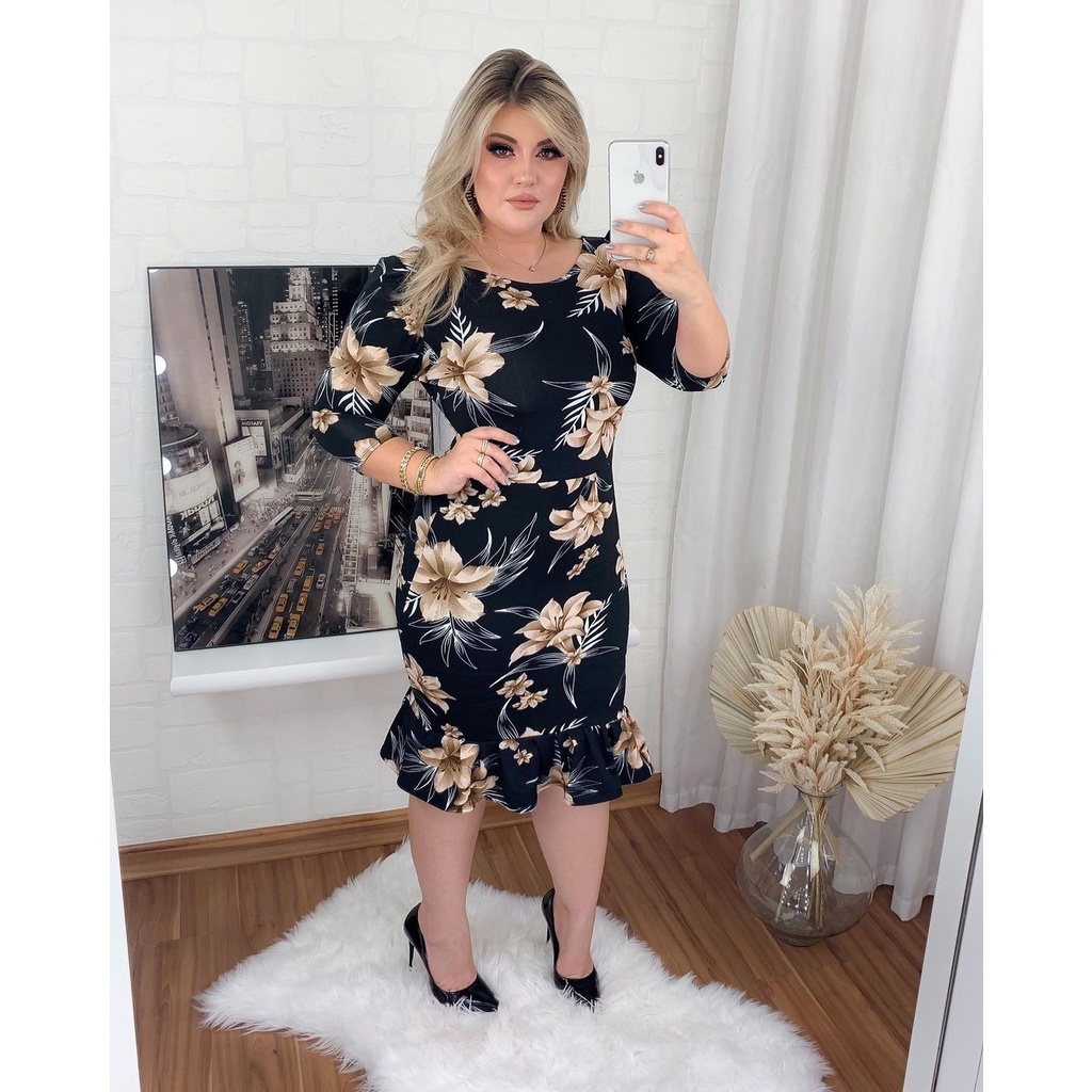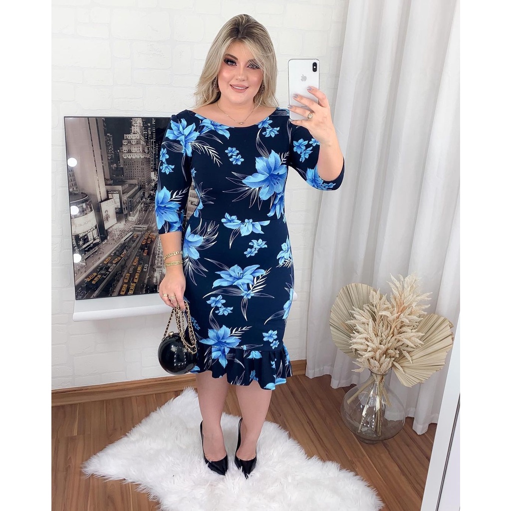 Vestidos Feminino Babado Evangélico Tubinho Gola Princesa Plus Size