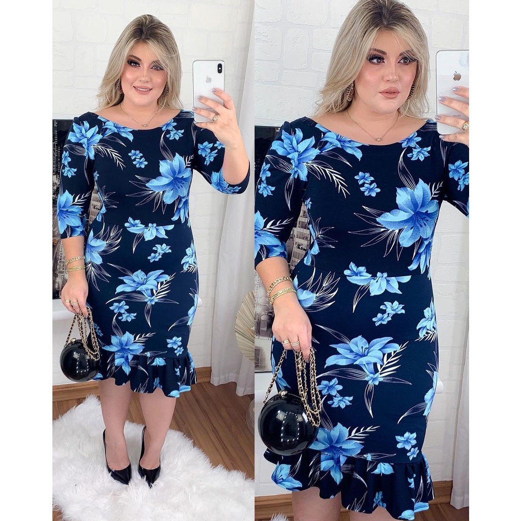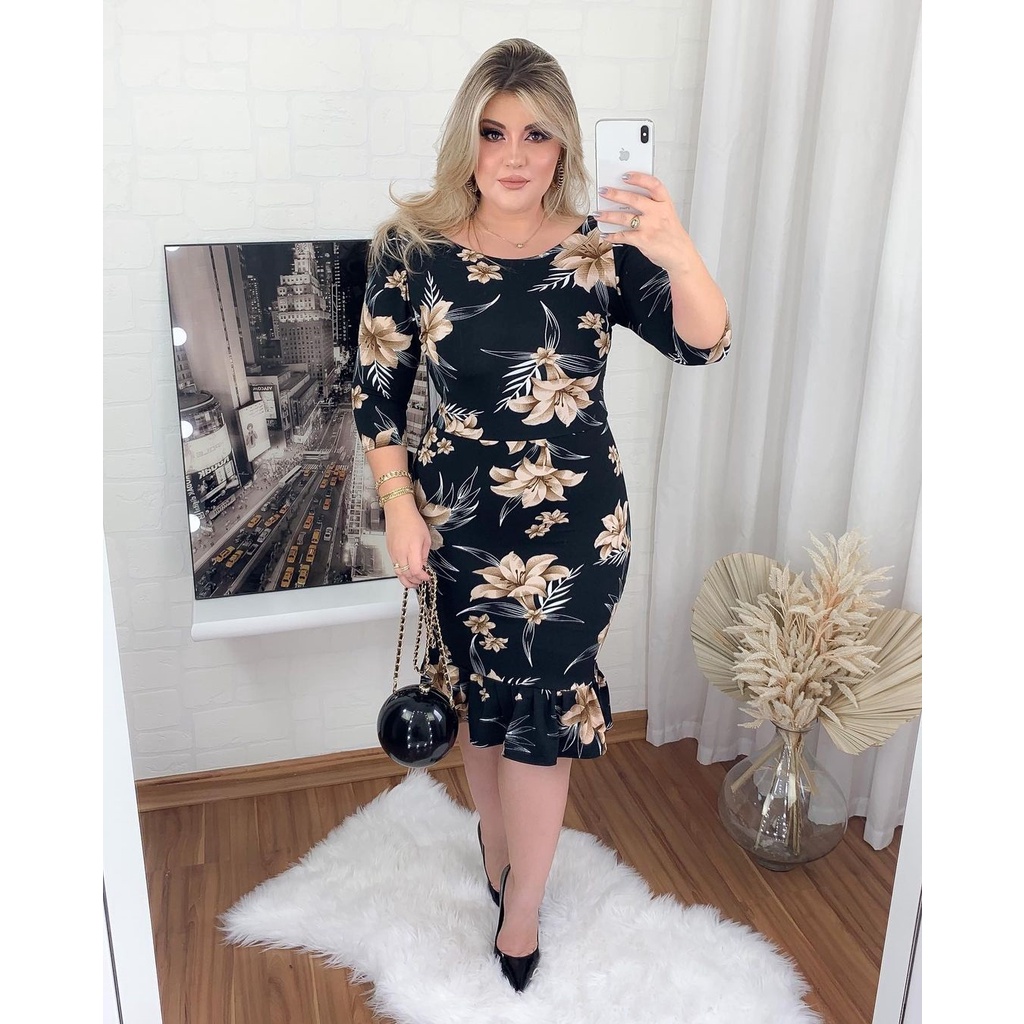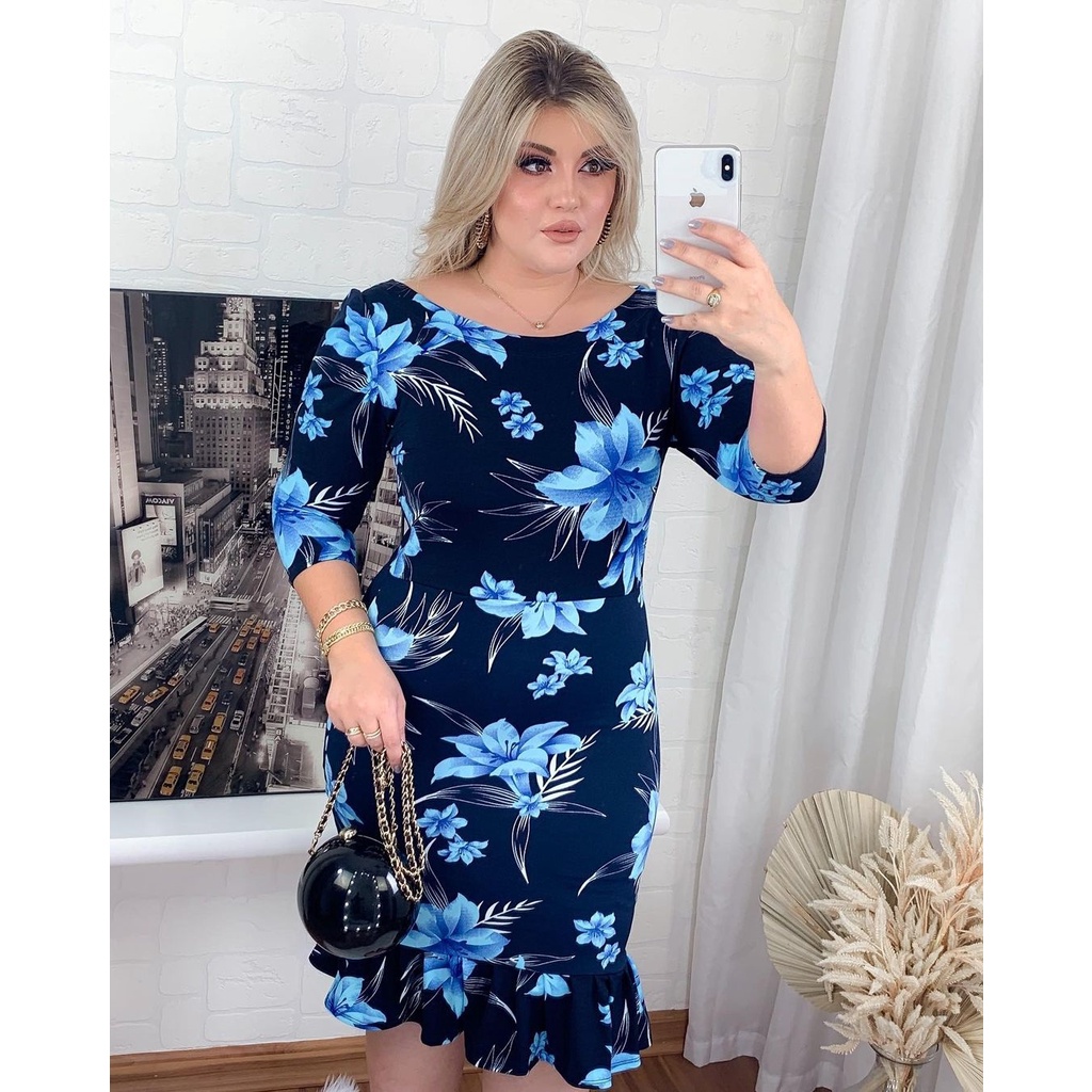 Vestidos Feminino Babado Evangélico Tubinho Gola Princesa Plus Size
