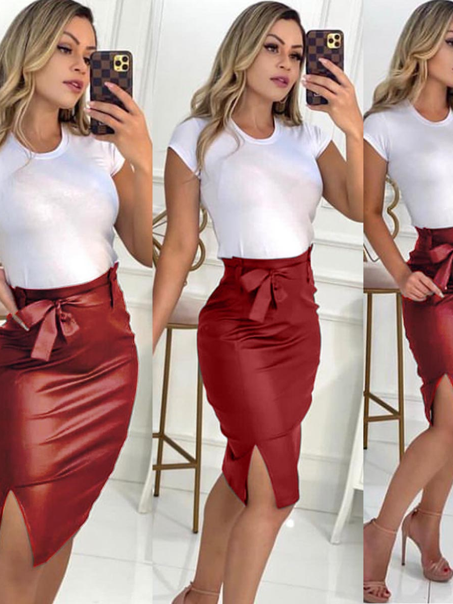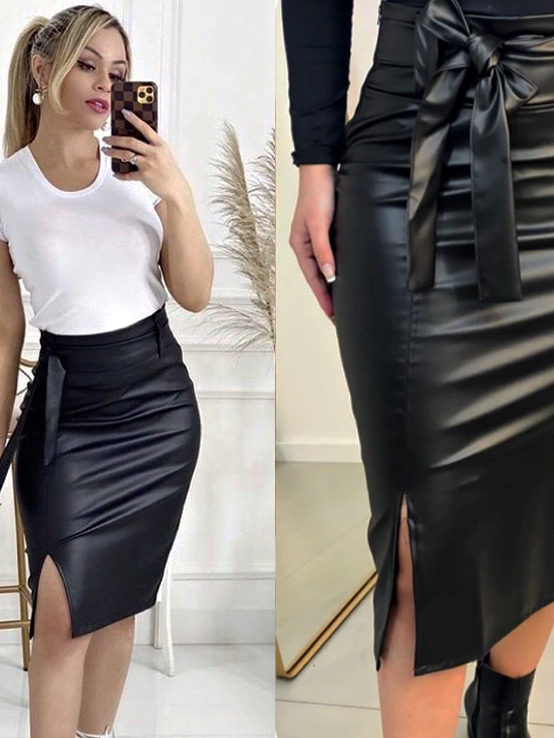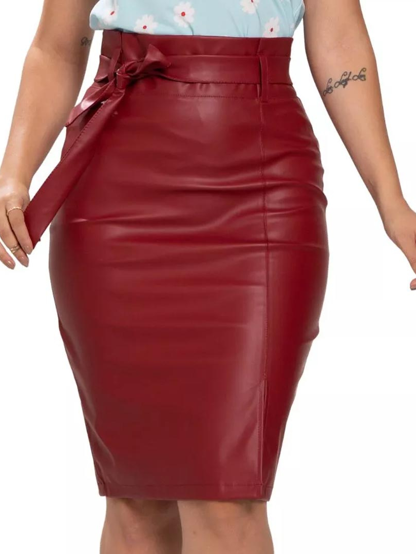 Saia Courino Evangélica Lápis com Cinto e Fenda