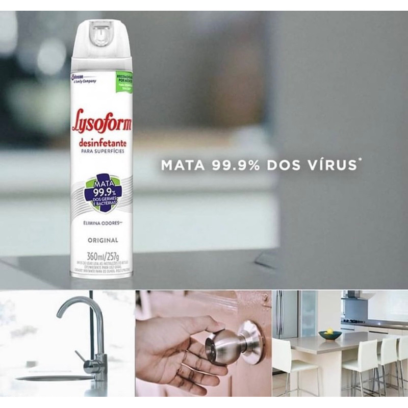Lysoform Aerosol Mata Covid Spray Bactericida e Mata 99,99% dos Virus