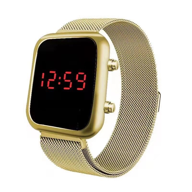 Relógio Feminino Digital Led Quadrado Dourado e Rose breto prata Moda Blogueira 2021