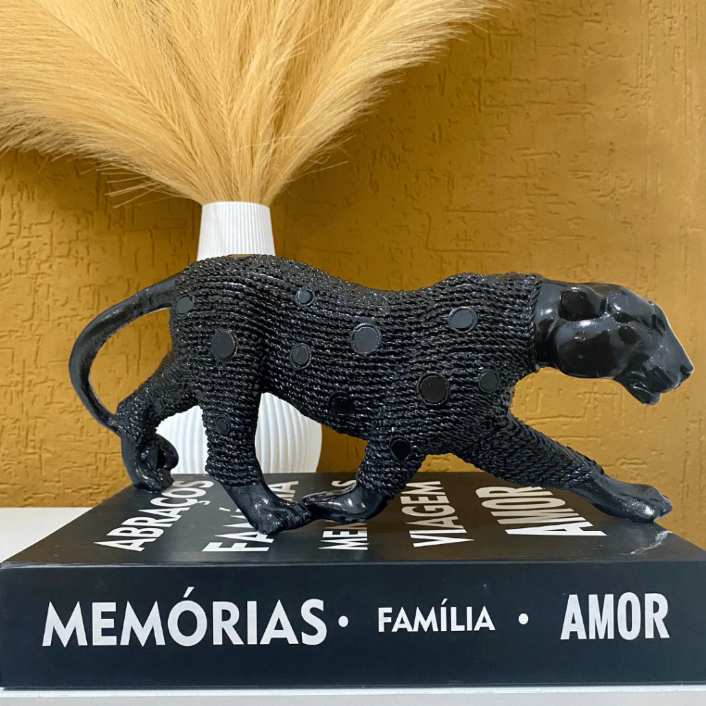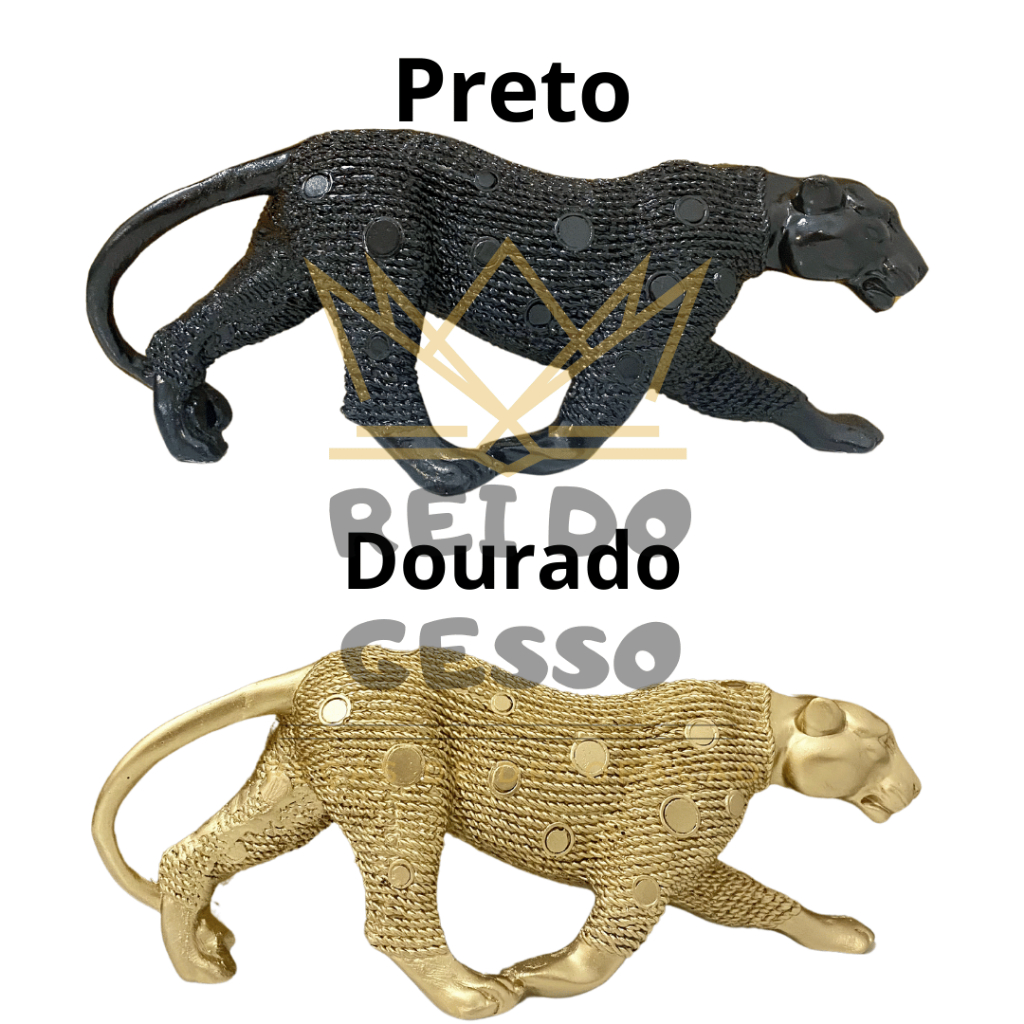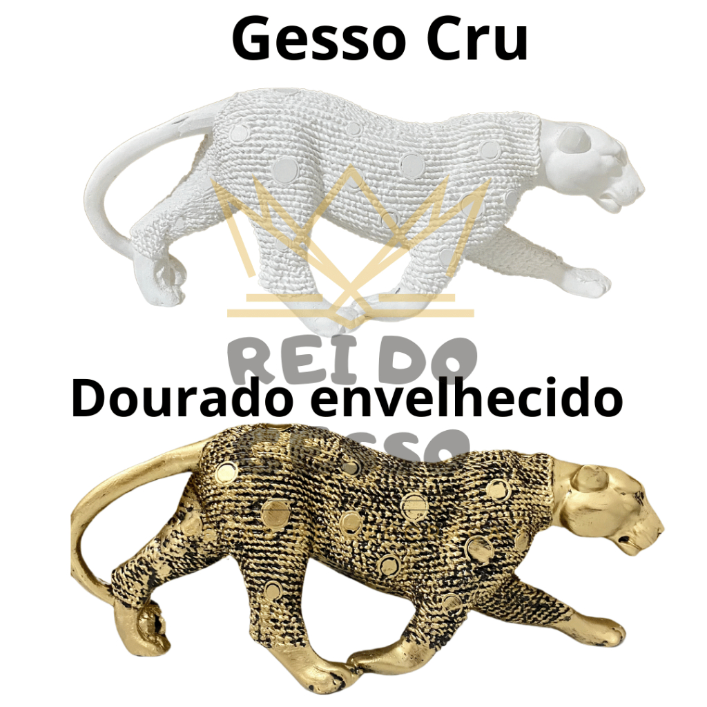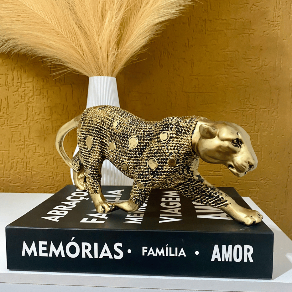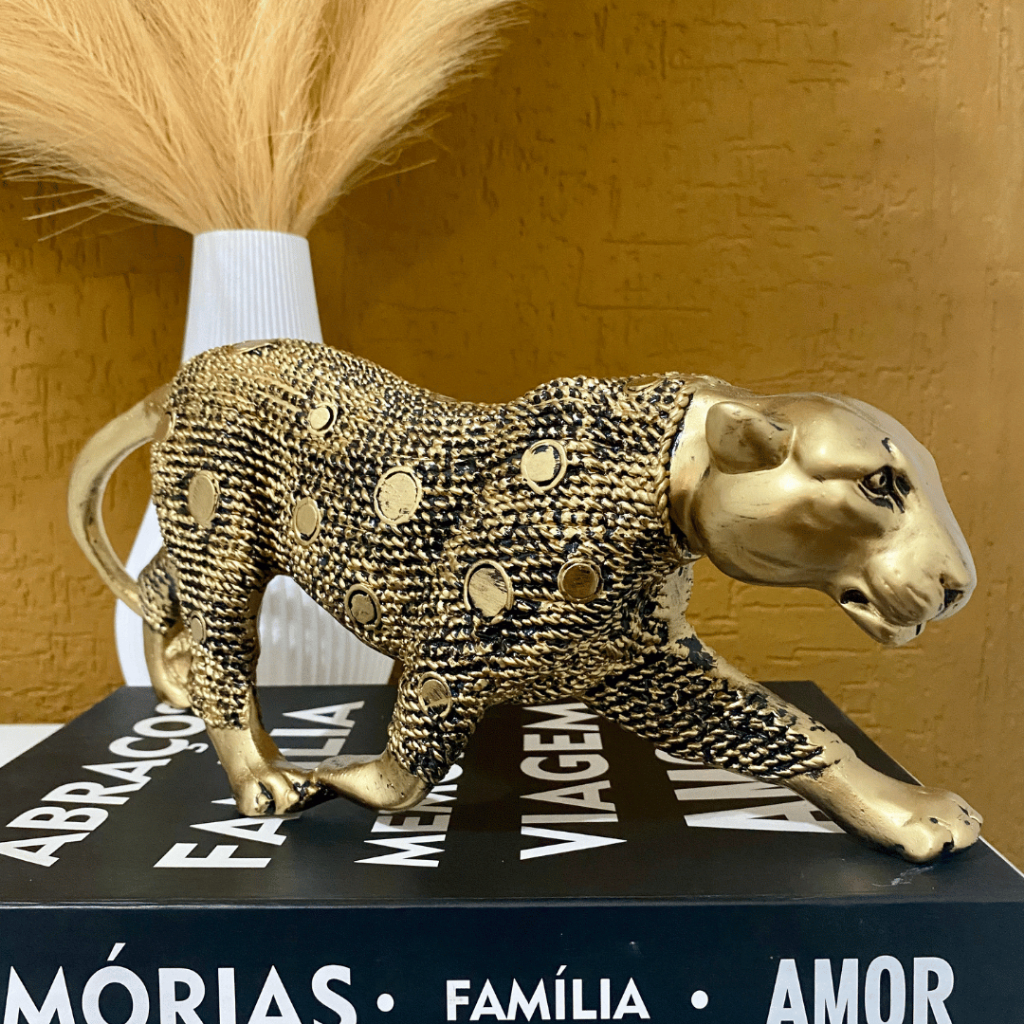 Escultura Pantera Ataque Andando Dourado Envelhecido Enfeite Decorativo