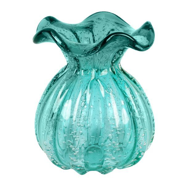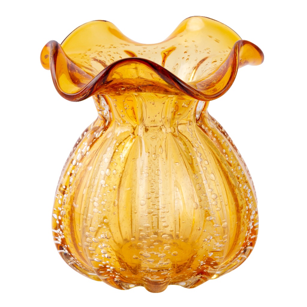 Vaso De Vidro Trouxinha Tipo Murano Ambar Veneza 12x14cm