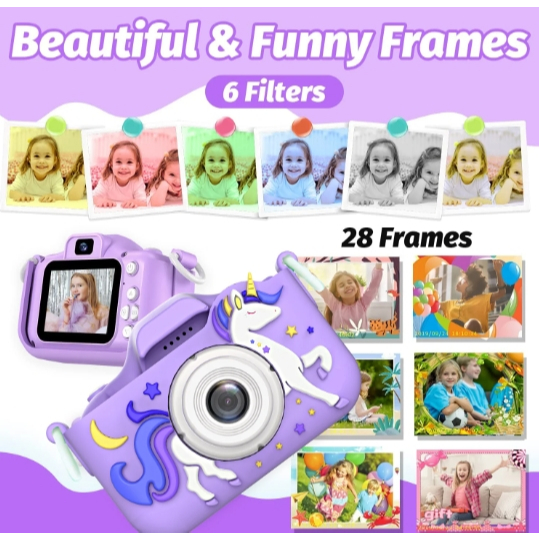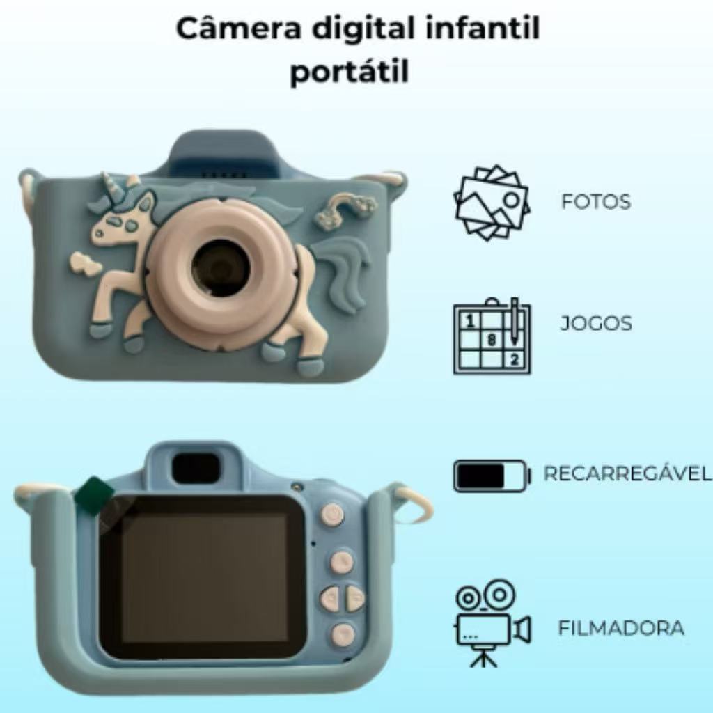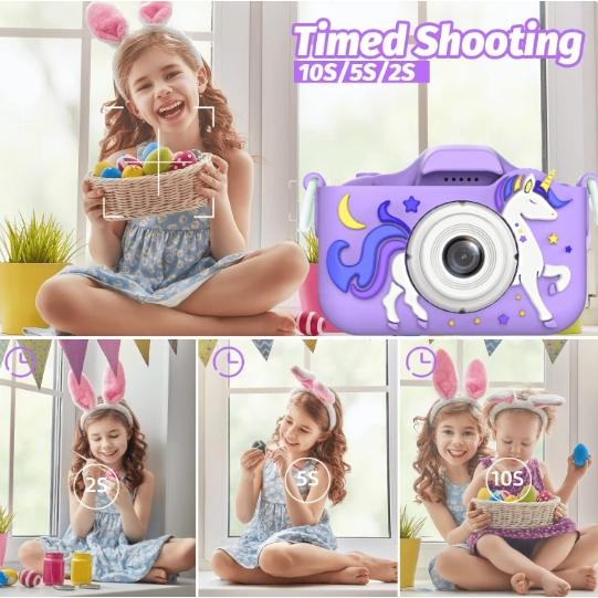 Câmera Infantil para Meninos, Meninas, Unicórnio de Desenho Animado com lente flip-up para Selfie e vídeo HD