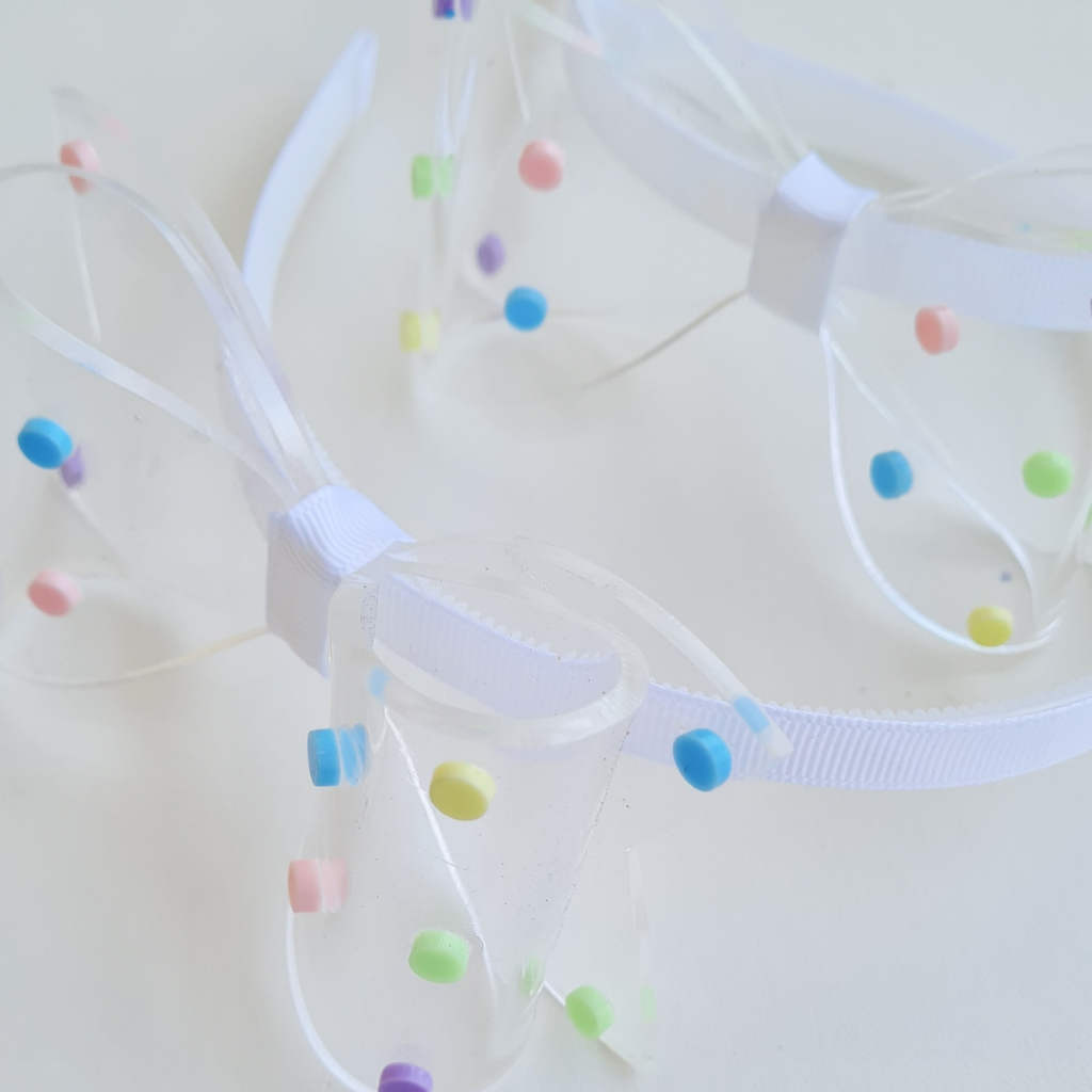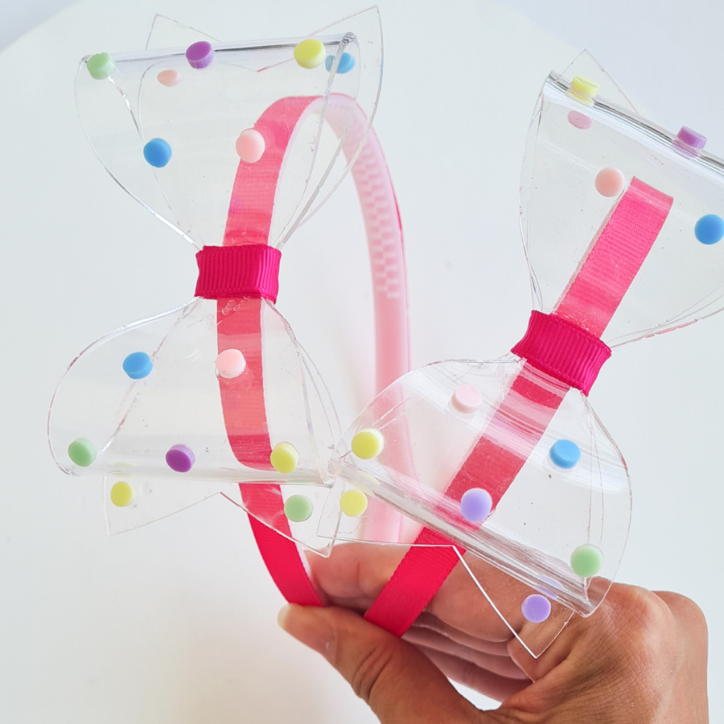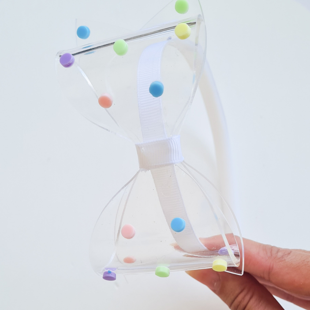 Tiara de cabelo infantil com laço de acrílico e bolinhas coloridas