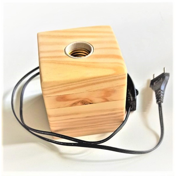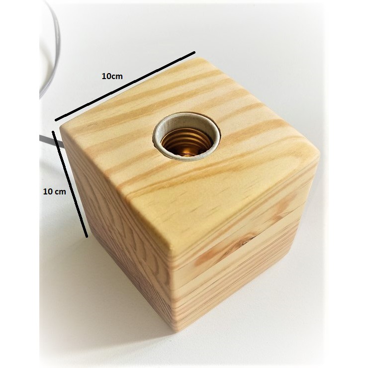 Abajour mini cubo em madeira de pinus com 10 x 10 cm