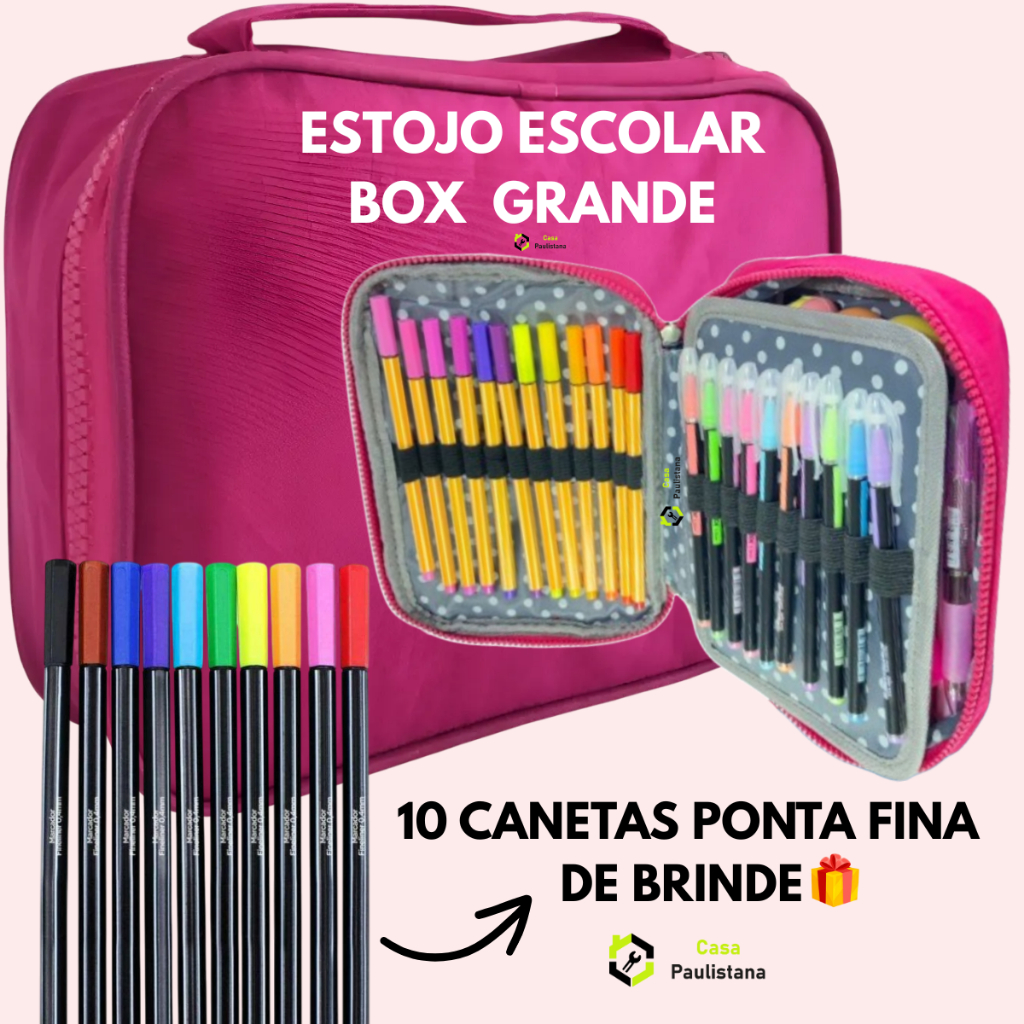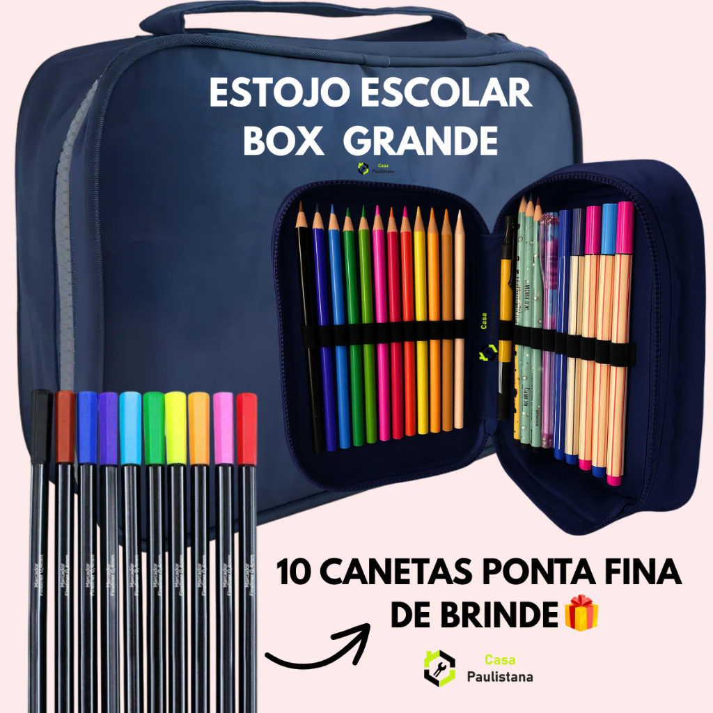 Estojo Escolar Box Organizador Jumbo Multifuncional + Brinde