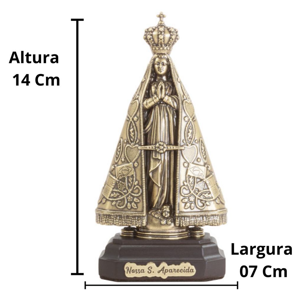 Imagem Nossa Senhora Aparecida 14 Cm Metal Base de Madeira