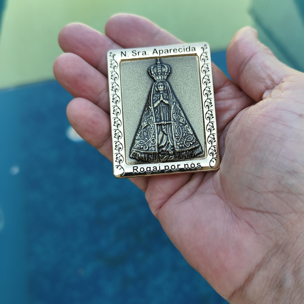 Adorno Metal de Mesa Nossa Senhora Aparecida Dourado 7cm