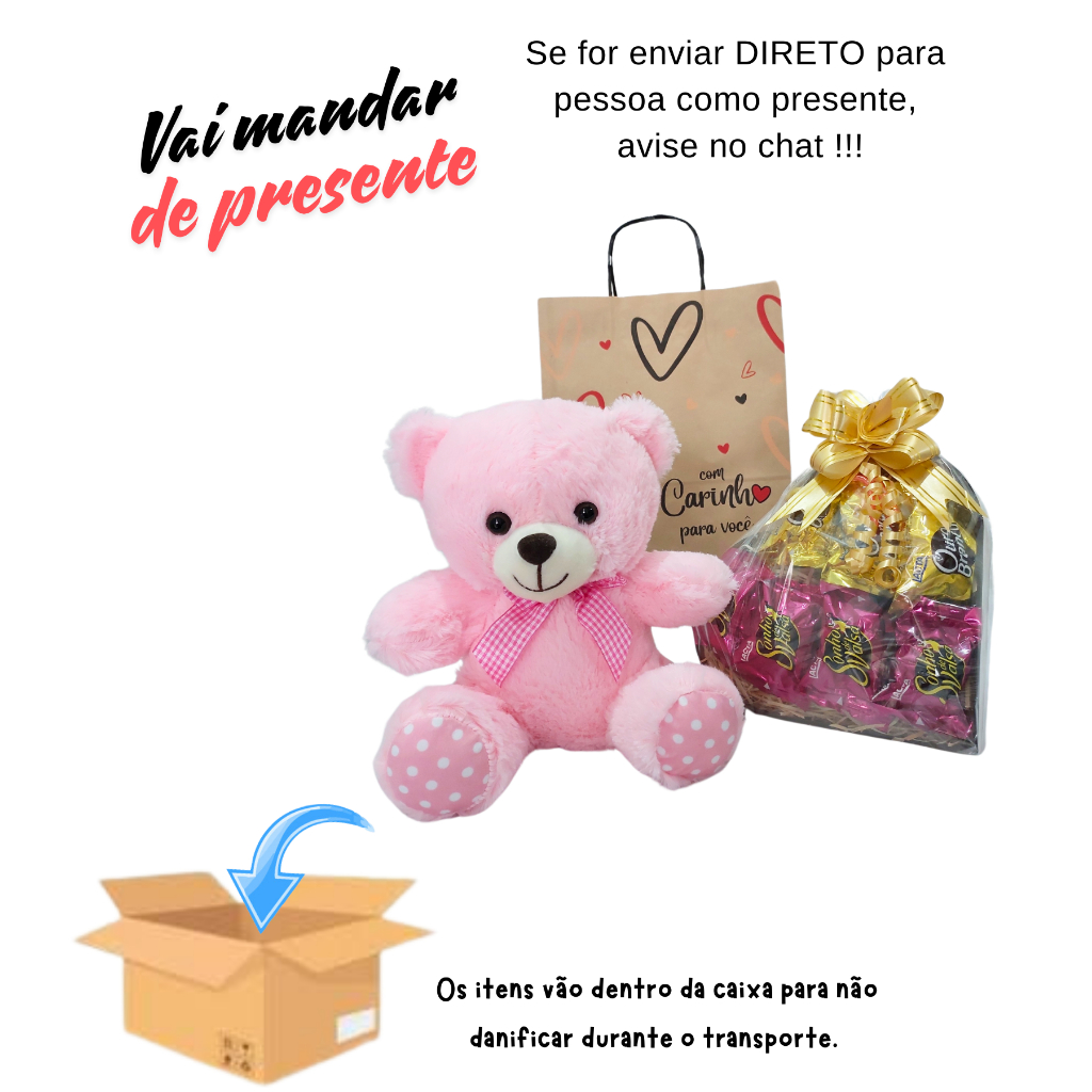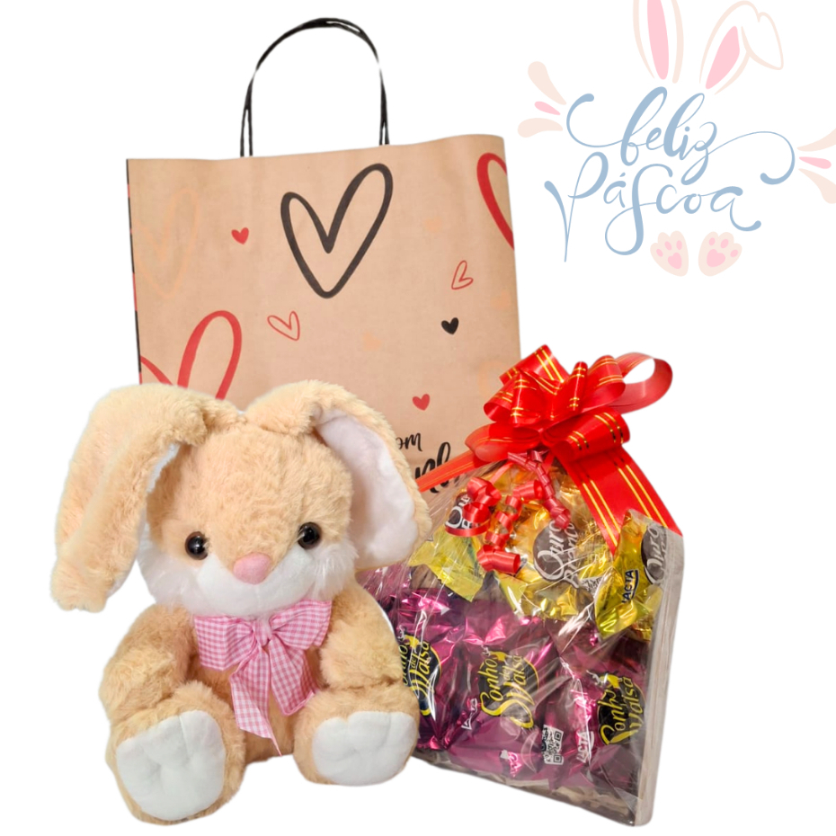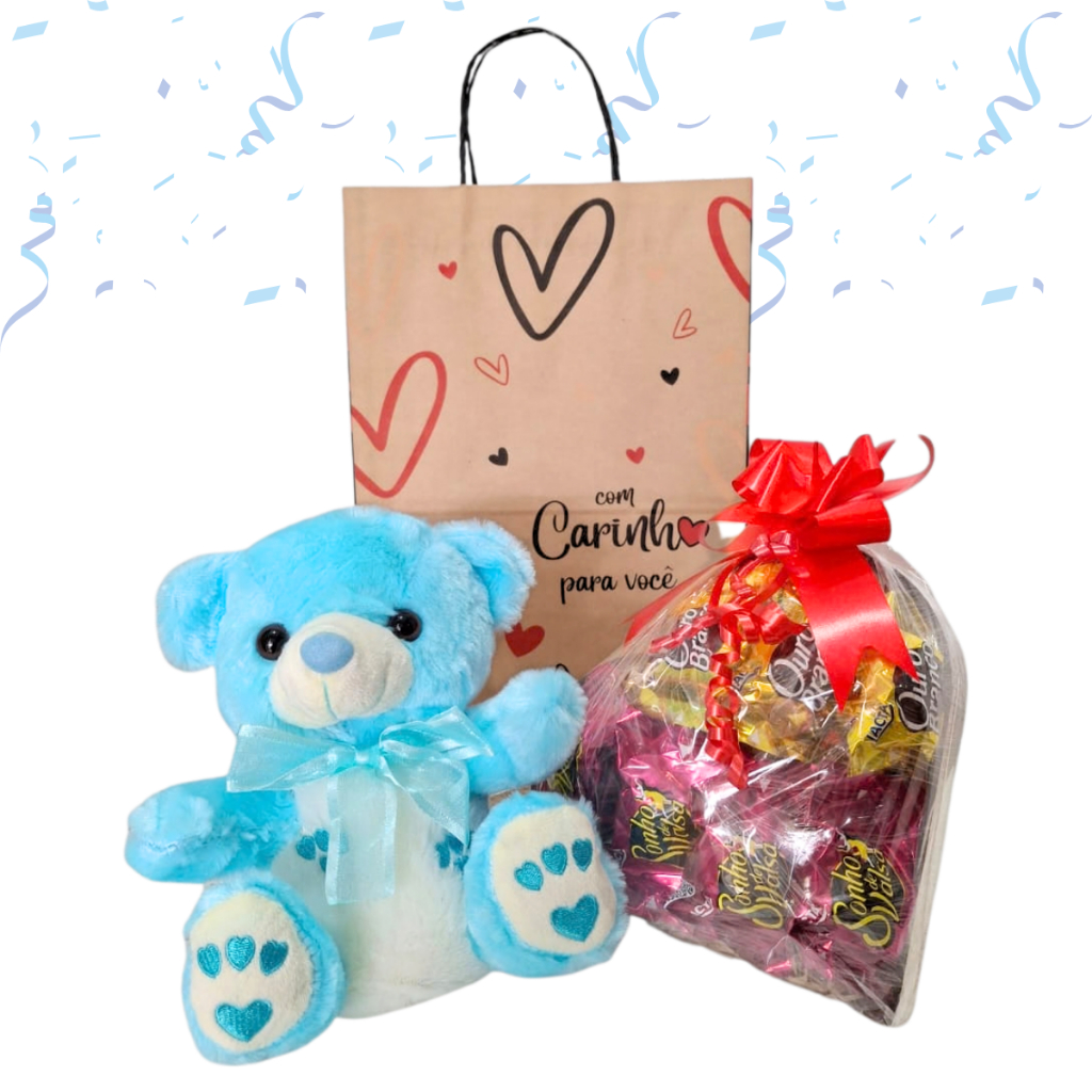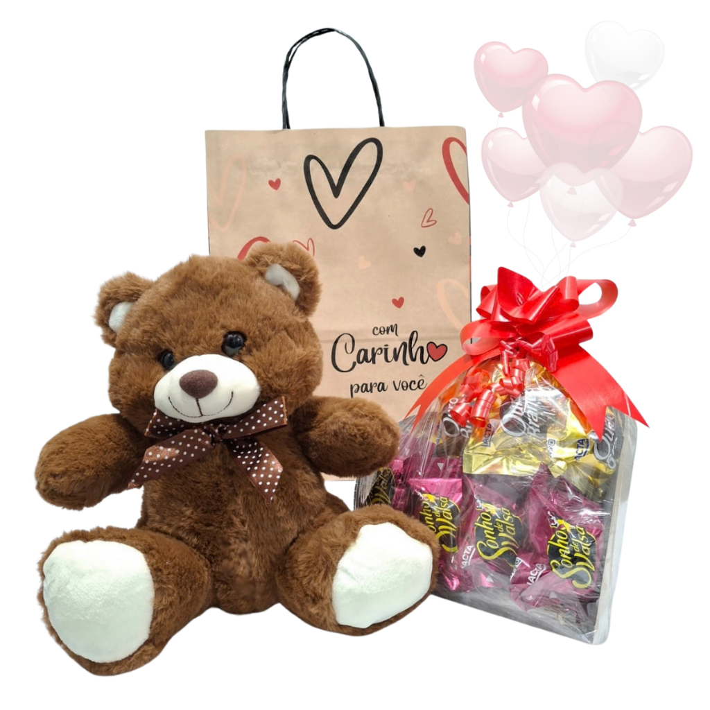 Cesta/Kit Presente - Urso, Coração MDF e Chocolates - Páscoa/Dia das Mães/Aniversário/Dia Namorados