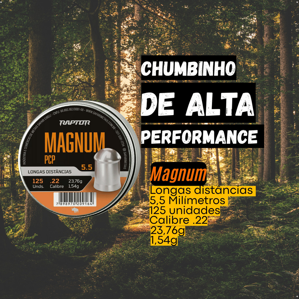 Chumbinho Raptor Magnum PCP 5,5mm Longa Distância 125un