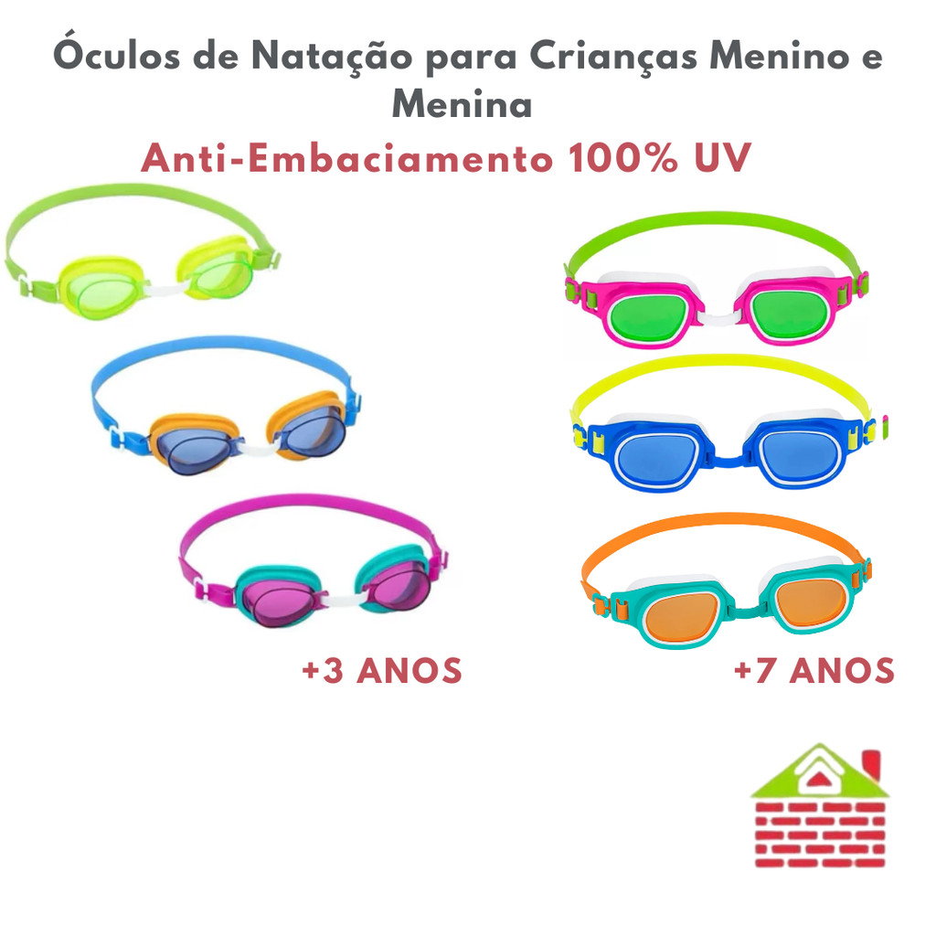 Óculos de Natação para Crianças Menino Menina Anti-Embaciamento 100% UV com Correia Ajustável Rápida