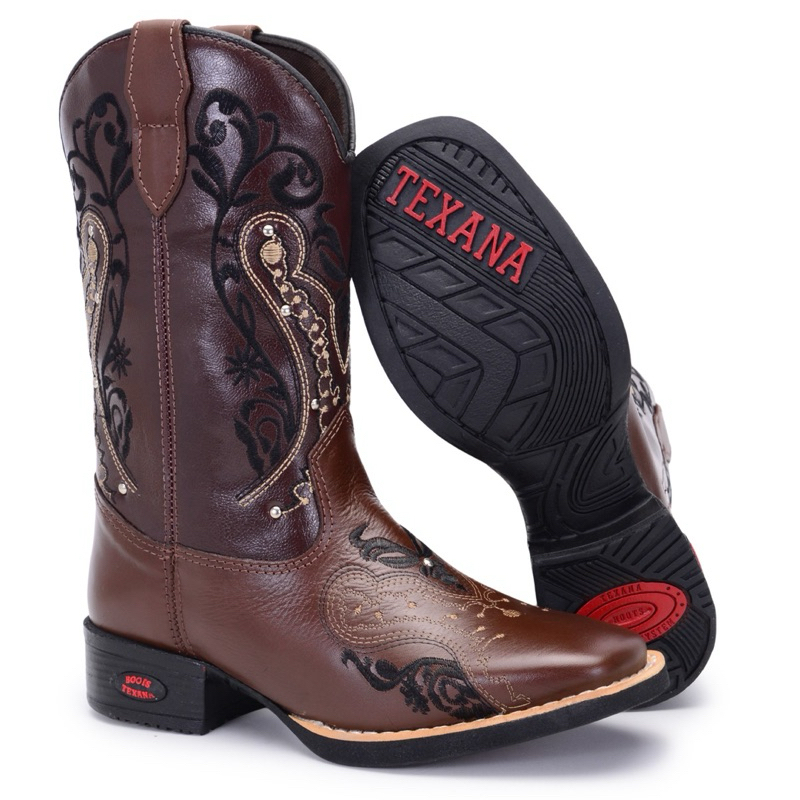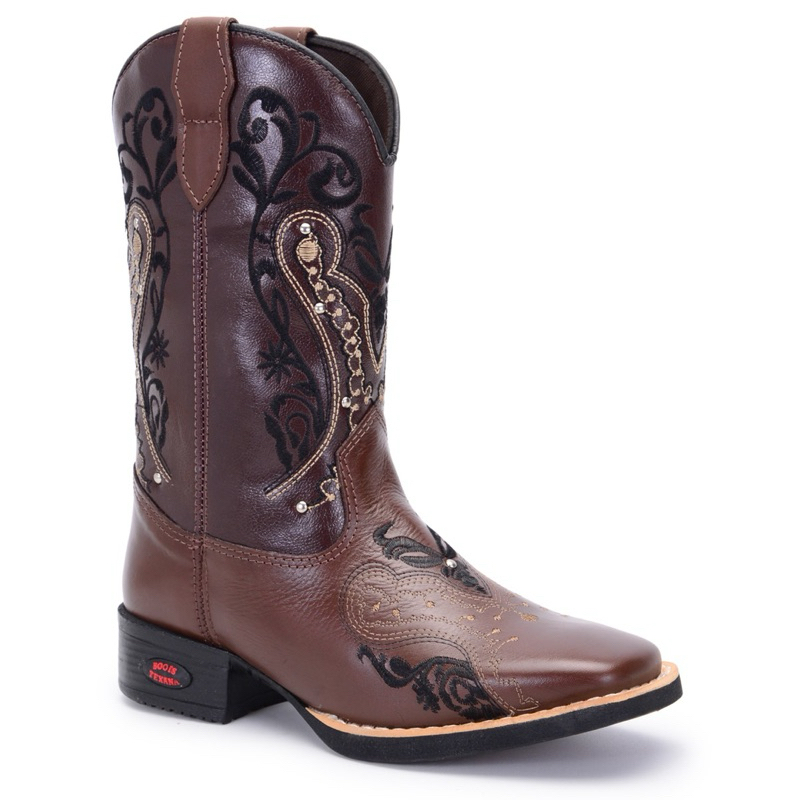 Bota Texana Feminina Bordada Country com Cravinhos Estilosa Confortável