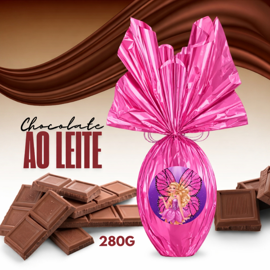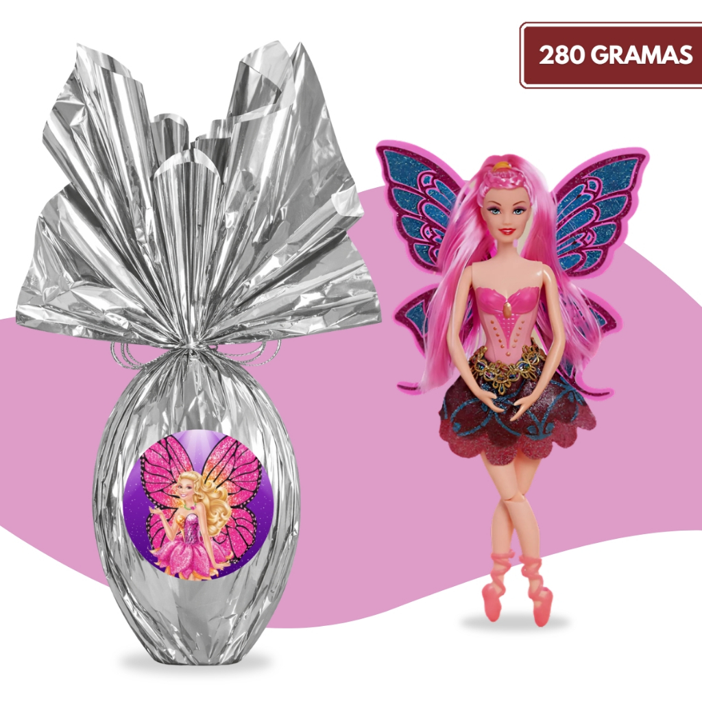 Ovo de Páscoa Barbie Boneca Fada 280g Chocolate ao Leite Crocante Infantil