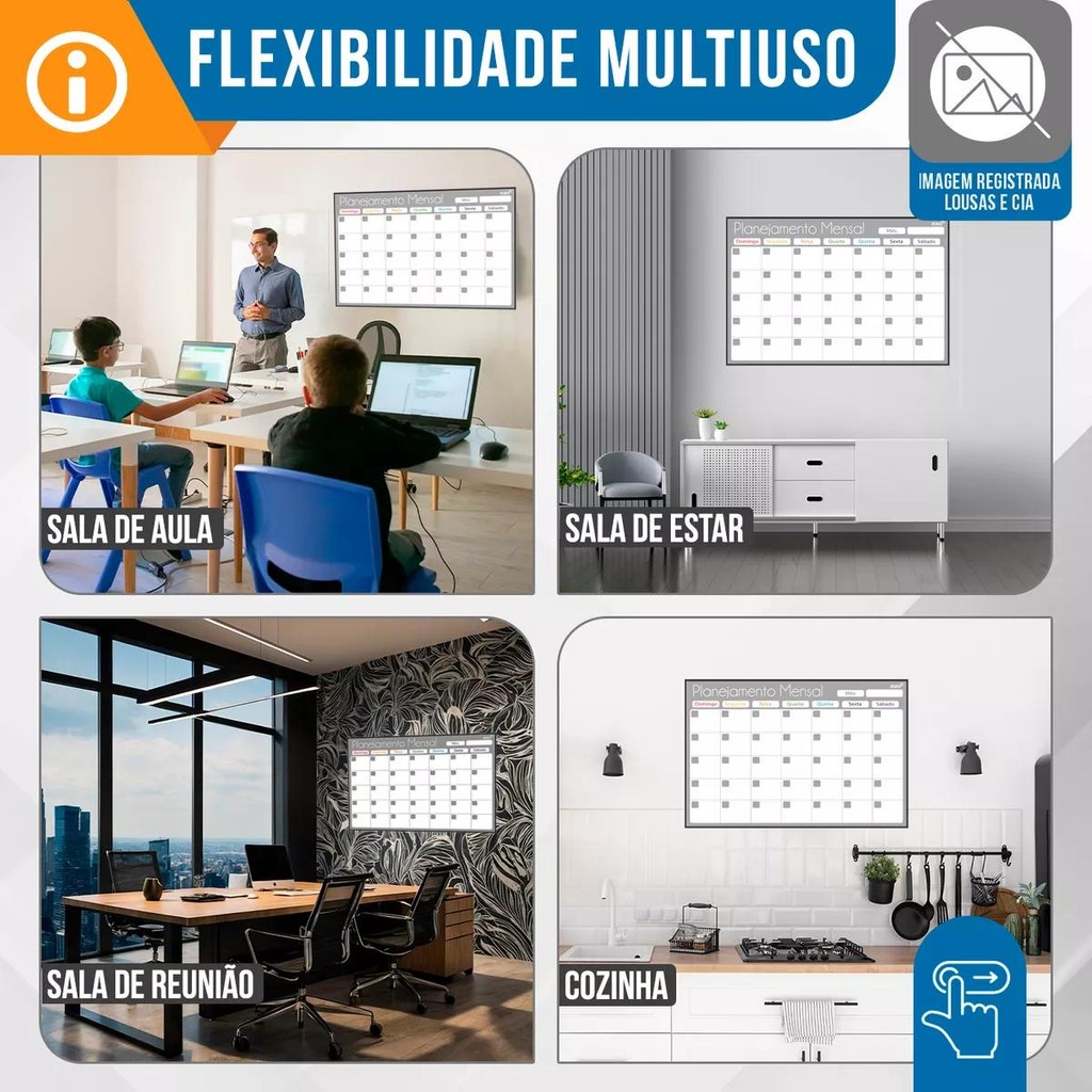 Planner Mensal 60x40cm Organizador de Rotina + 4 Canetas + Apagador + Kit Instalação Planner 2026