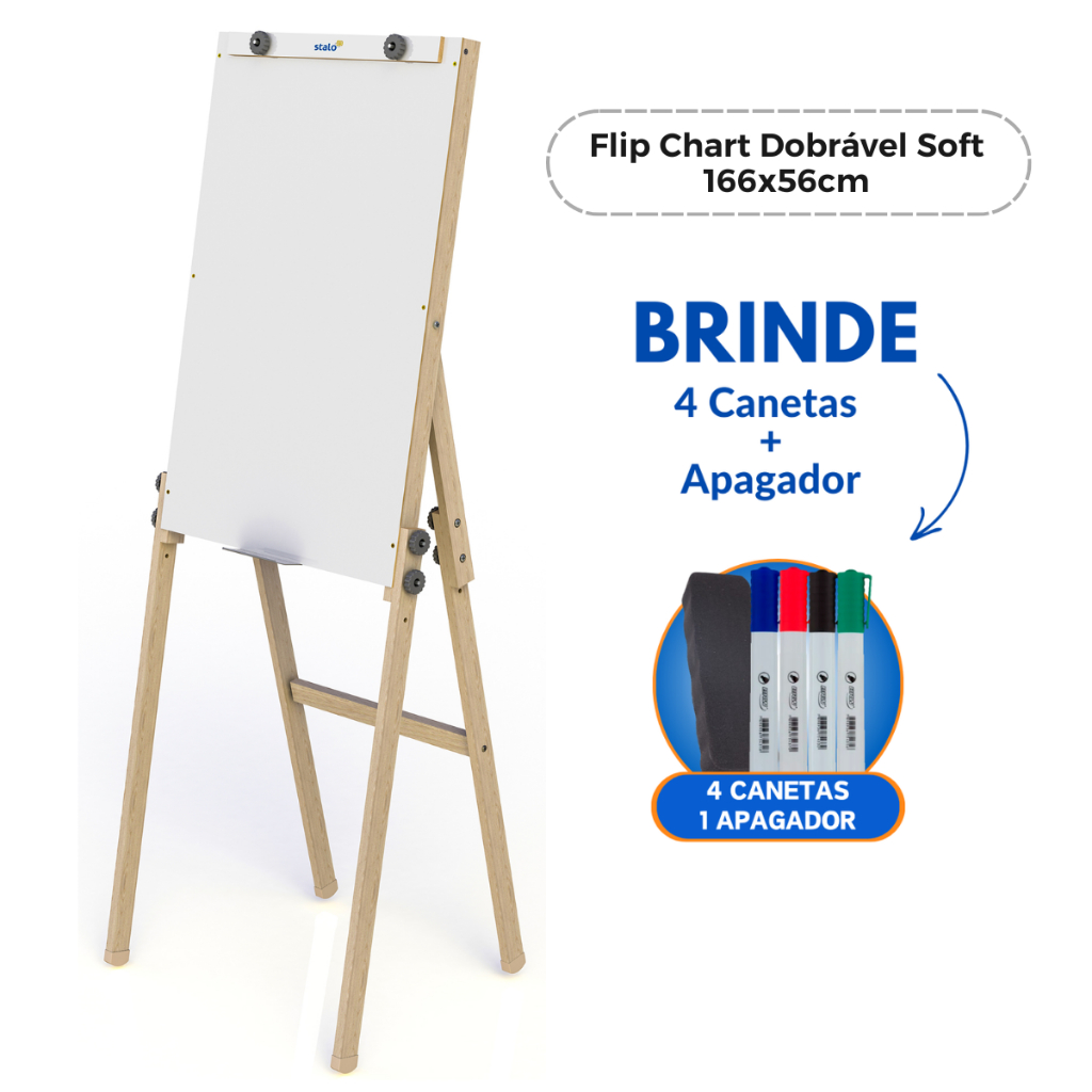 Cavalete Flip Chart Soft Dobrável + 4 Canetas 1 Apagador