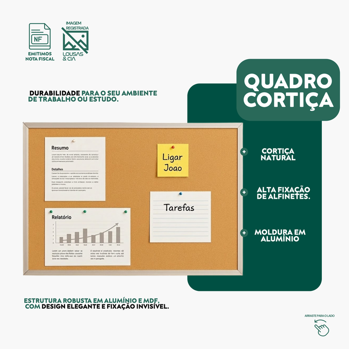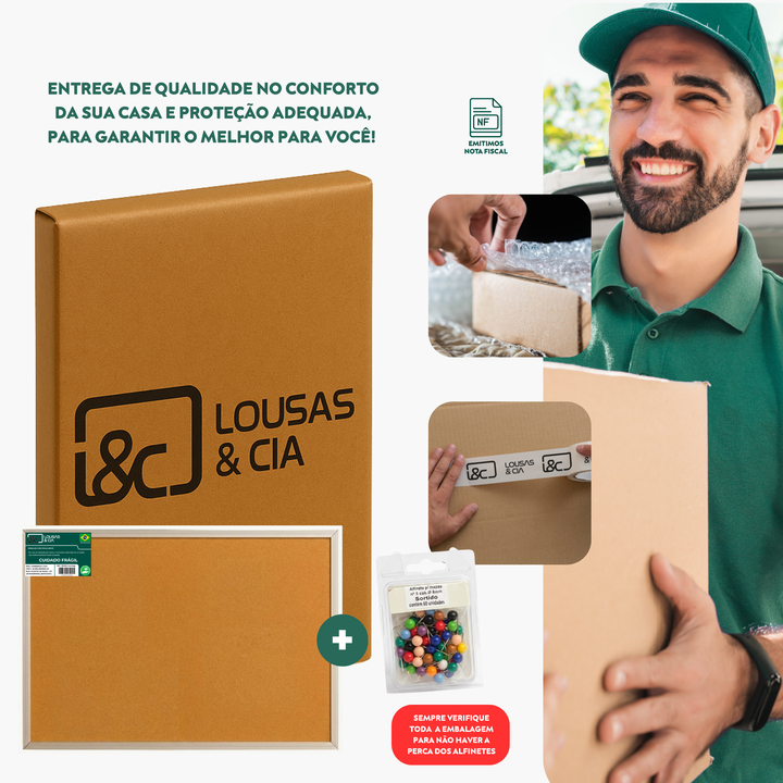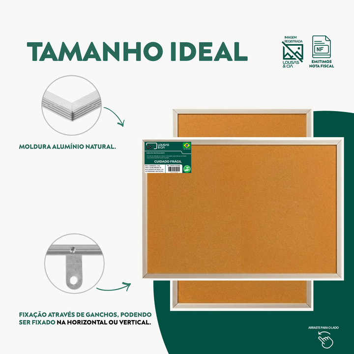 Quadro de Avisos 120x90cm Cortiça Moldura Alumínio + 60 Alfinetes Grátis