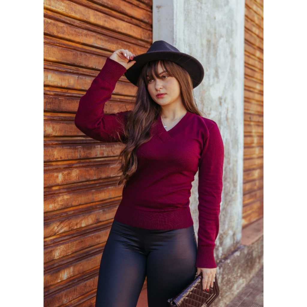 Blusa De Frio Basica Sueter Decote V Feminina Tricô Tricot Inverno