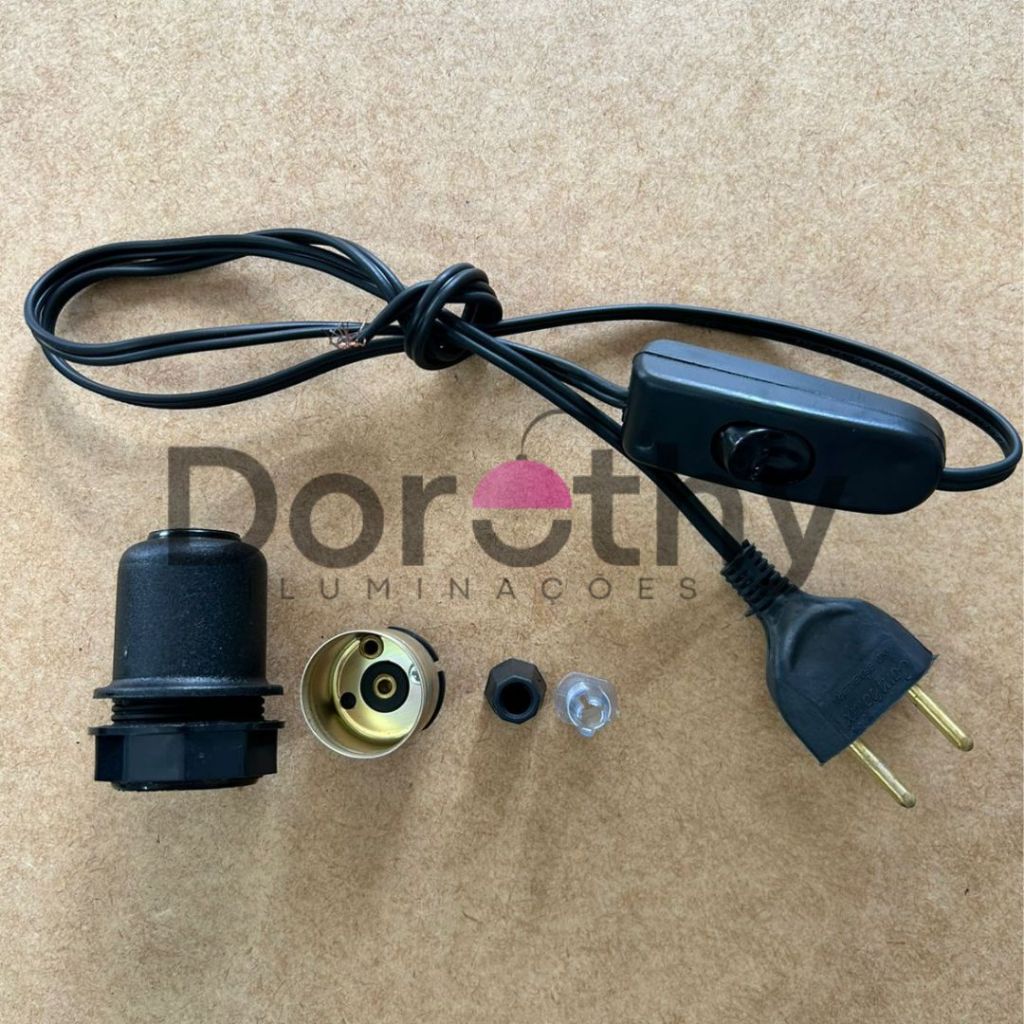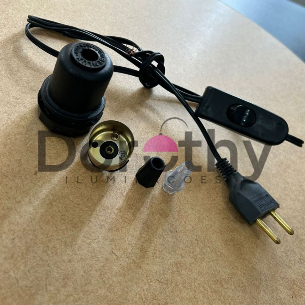 Rabicho Cordão de Abajur 1,5 M Preto Com Interruptor meio Fio Bivolt